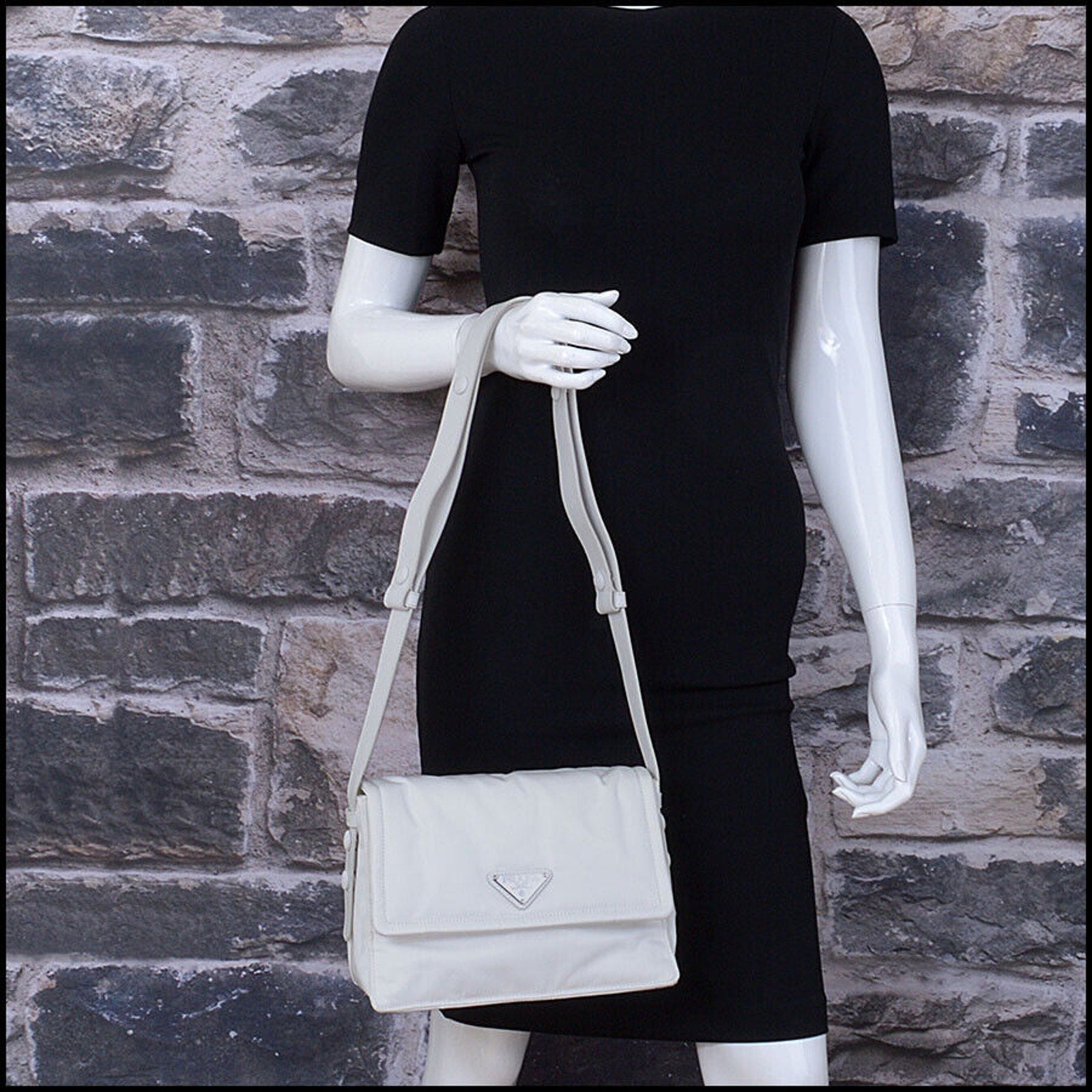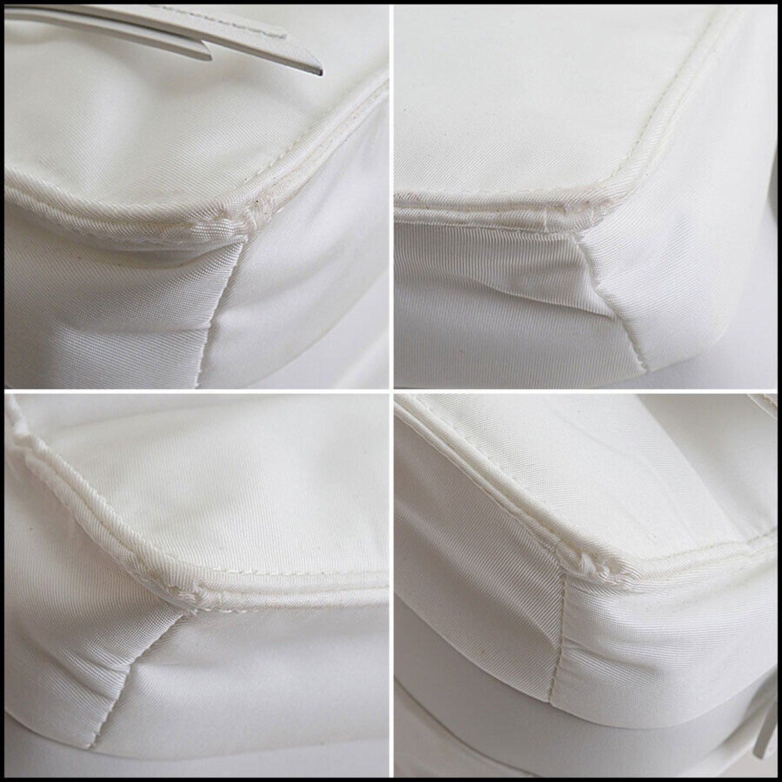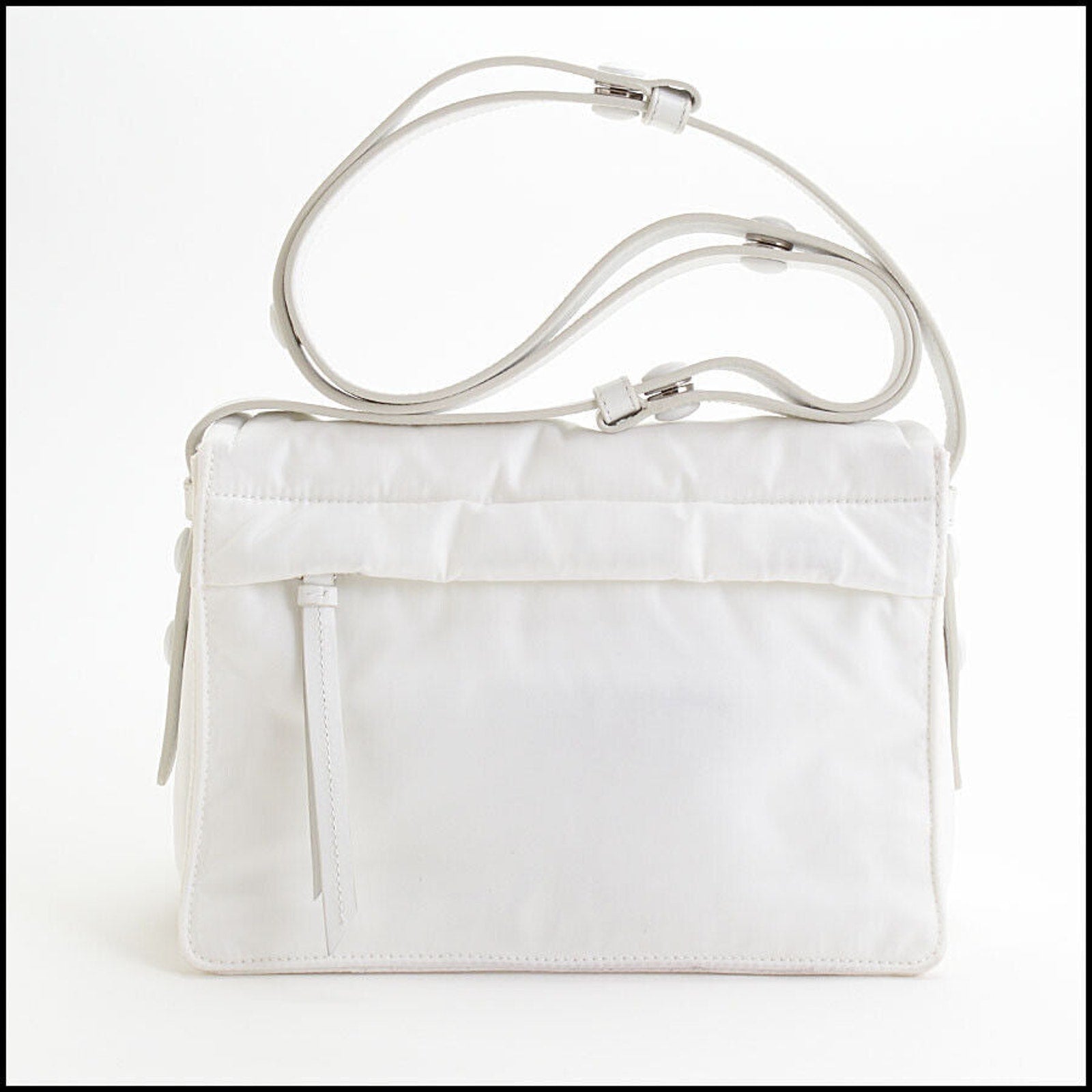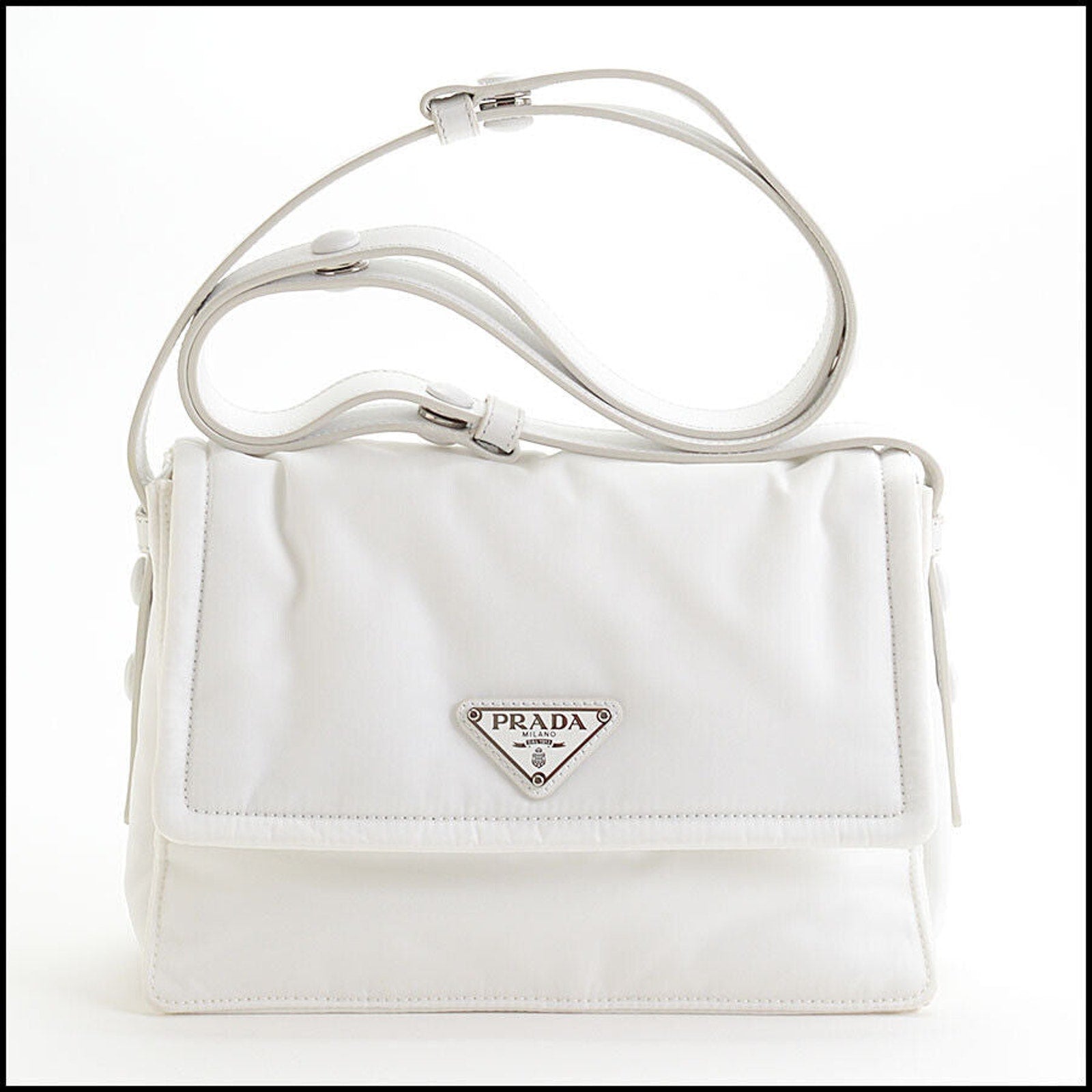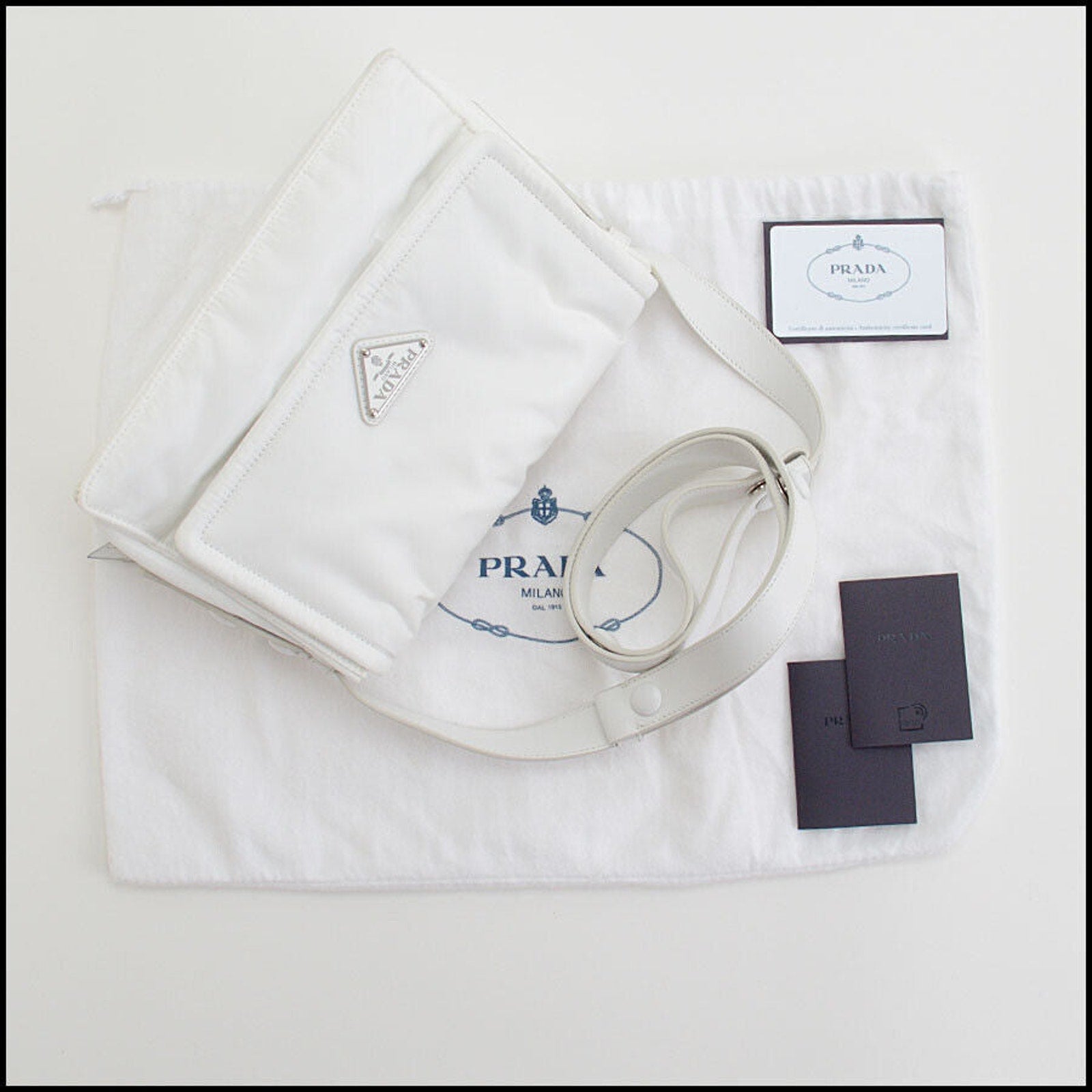 RDC13463 Authentic PRADA White Re-Nylon Tessuto Vitello Small Shoulder Bag