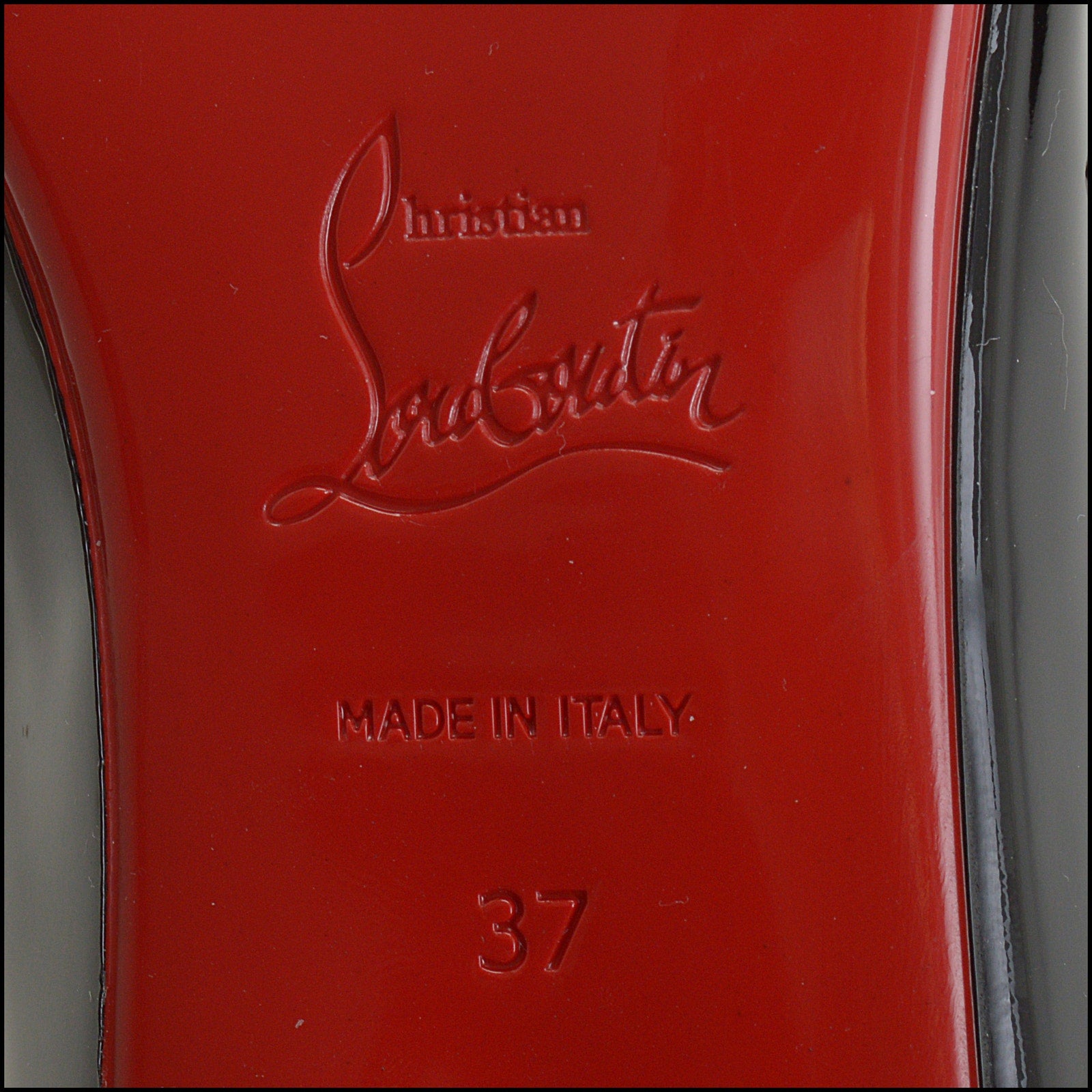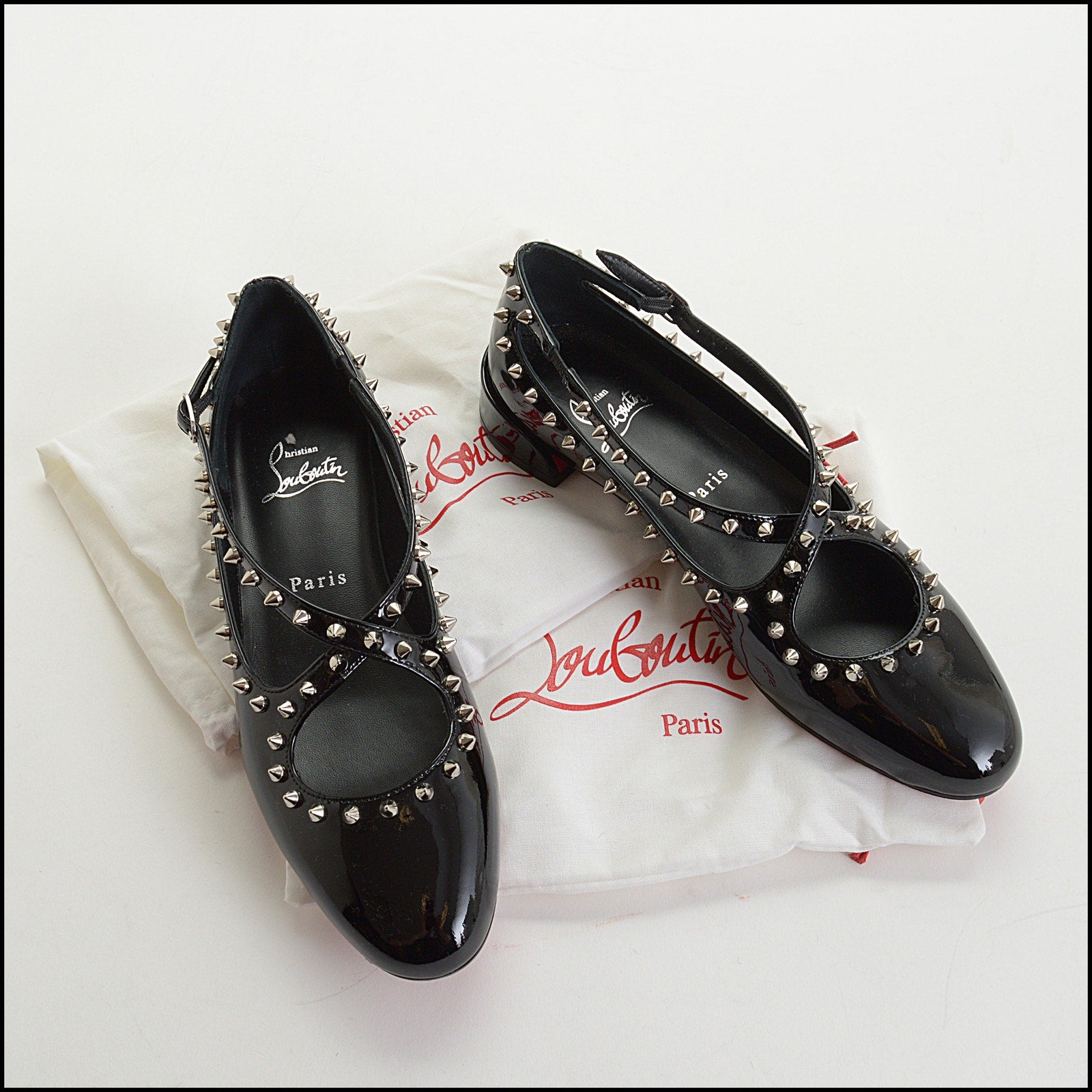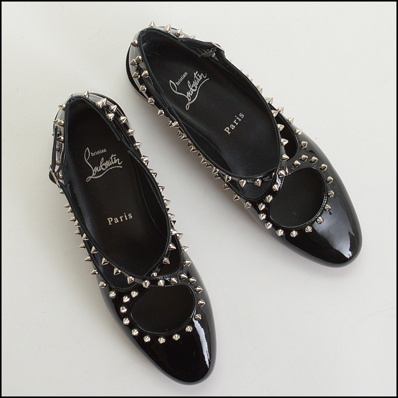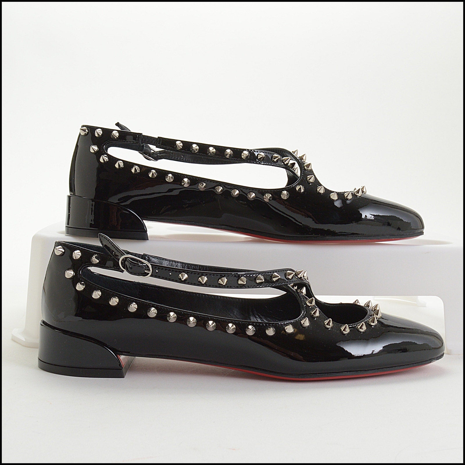 RDC14558 CHRISTIAN LOUBOUTIN Black Patent Leather Studded Pilouta Jane Flats Size 37