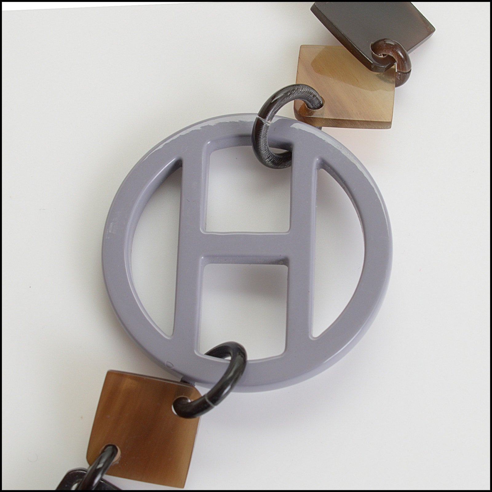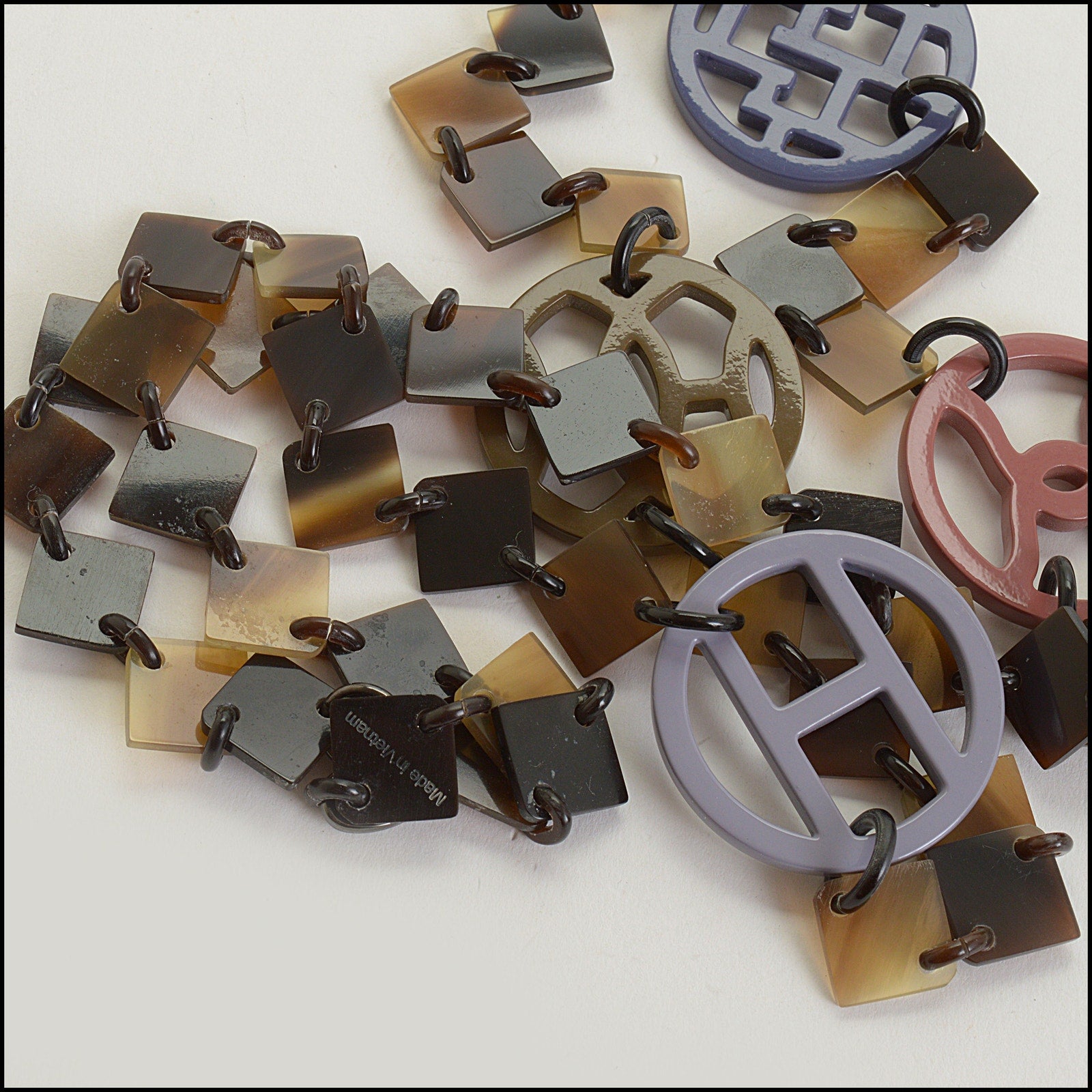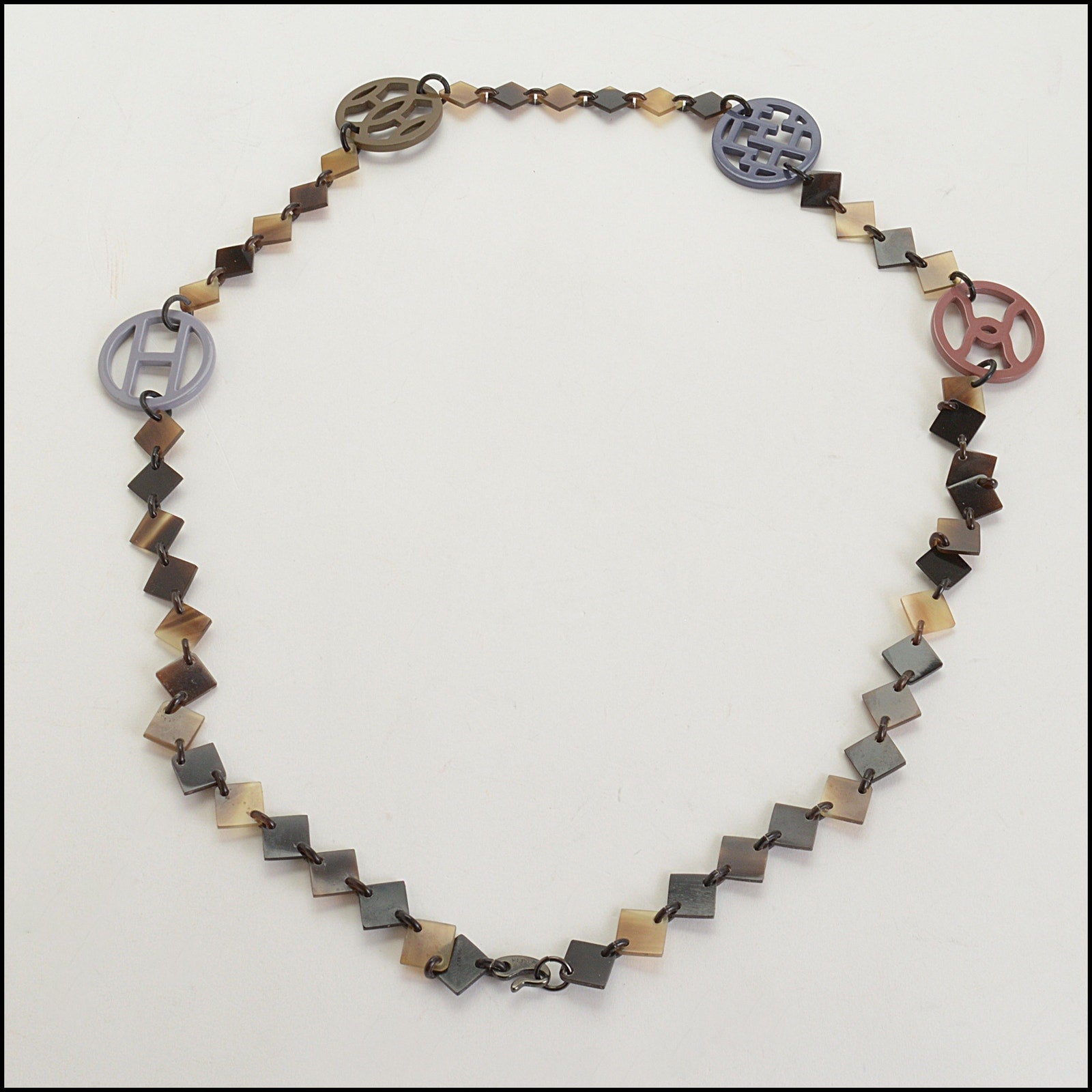 RDC14689 HERMES Buffalo Horn & Laquered Wood Logo Necklace