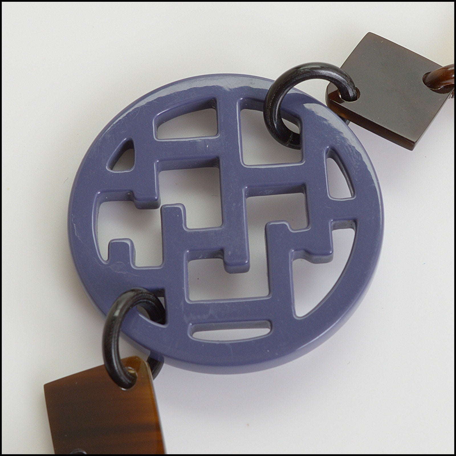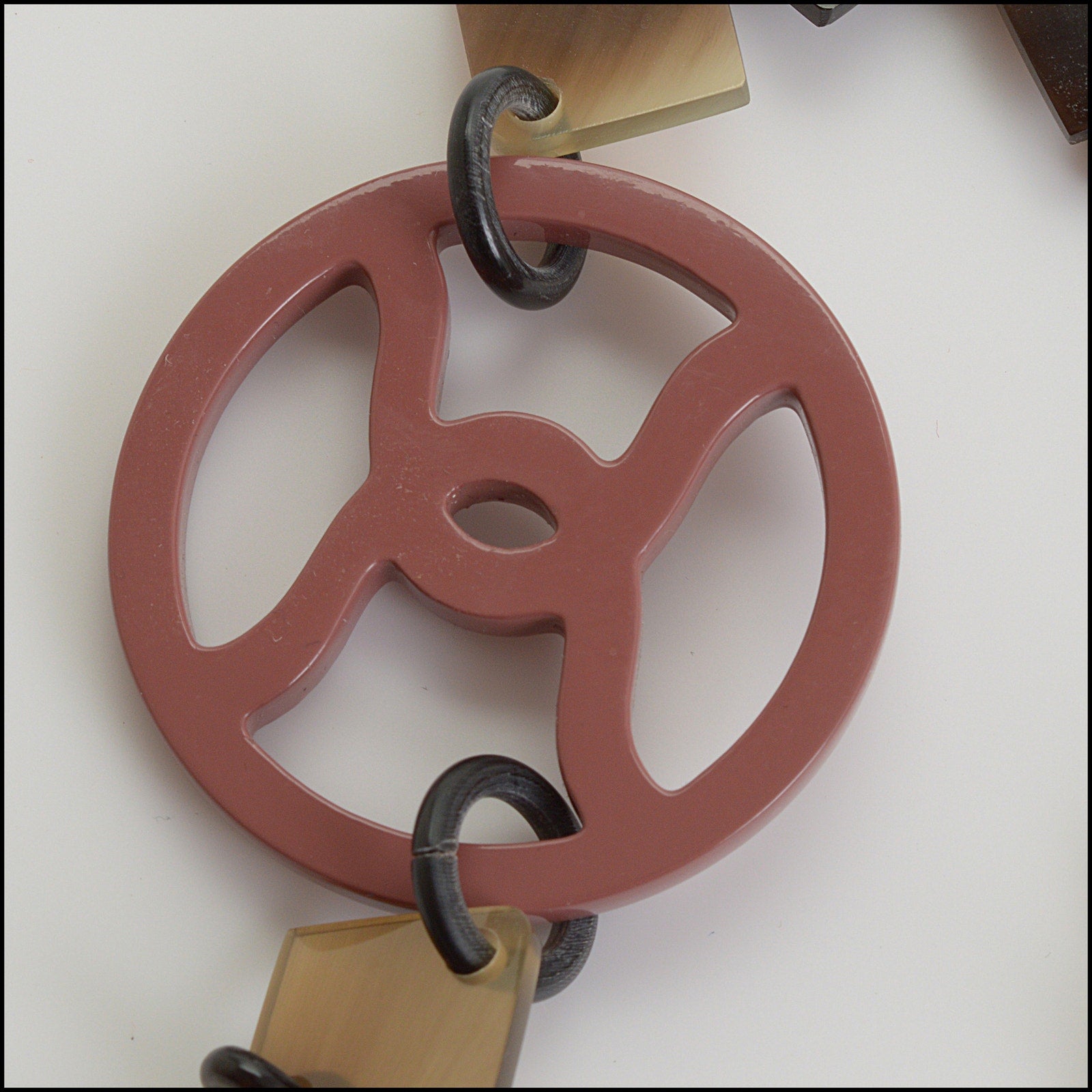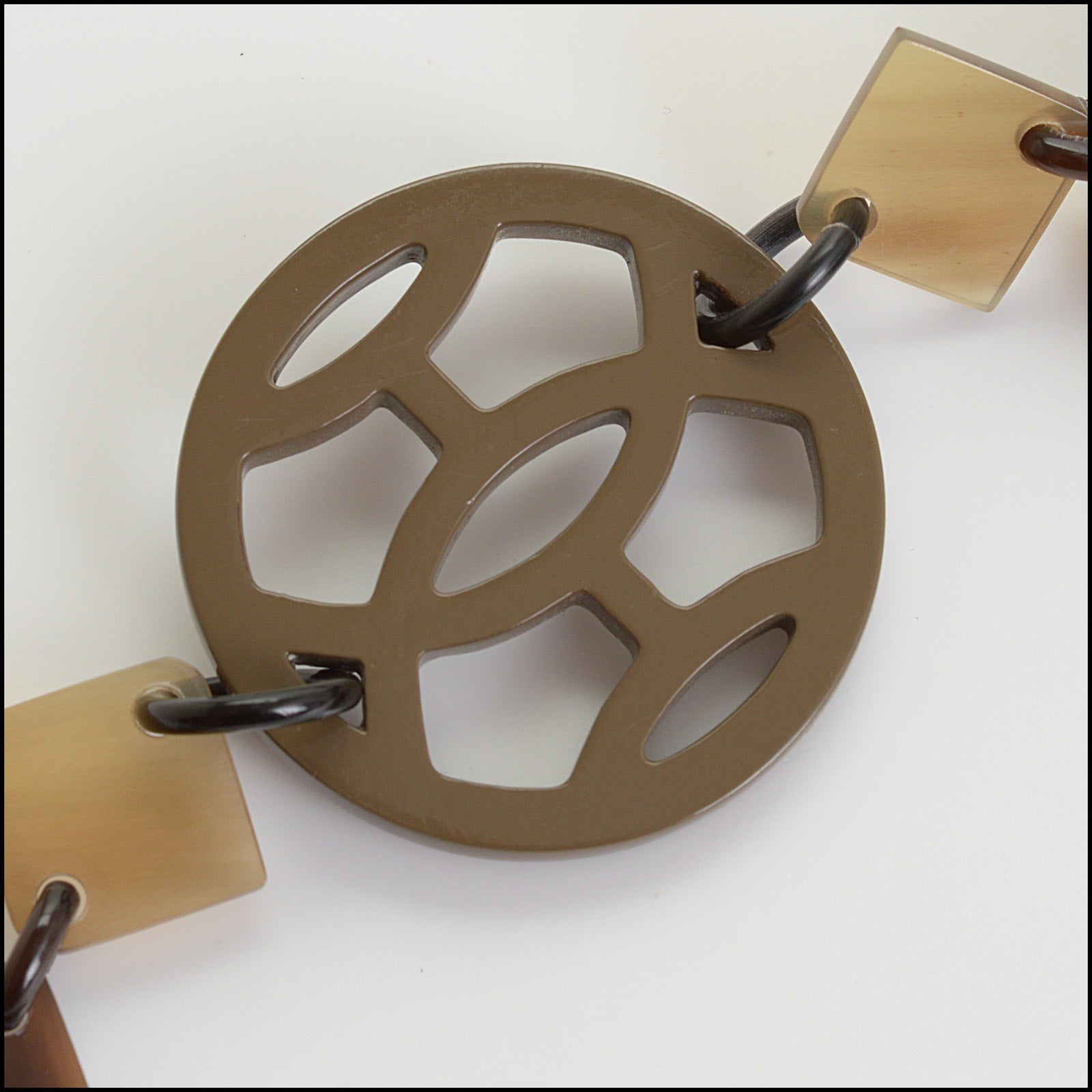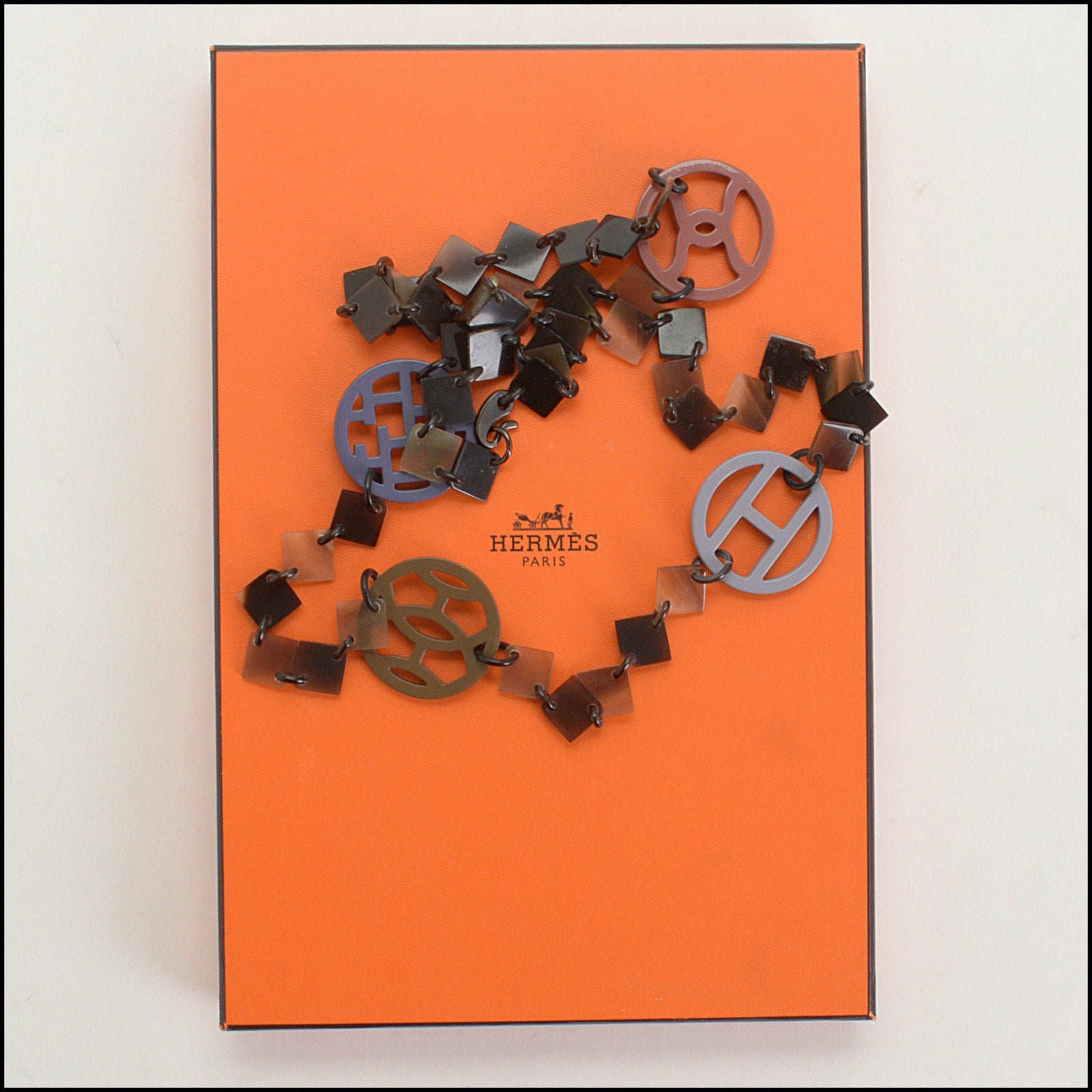 RDC14689 HERMES Buffalo Horn & Laquered Wood Logo Necklace