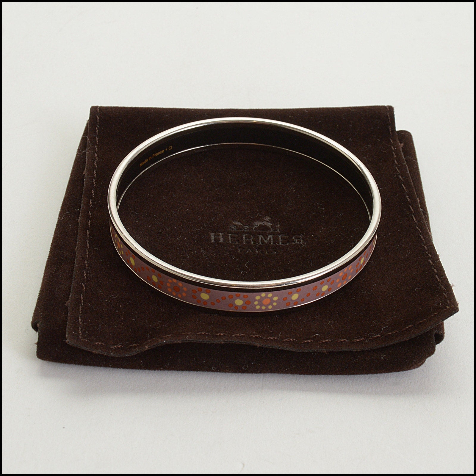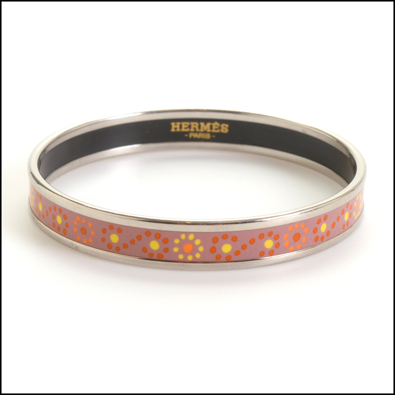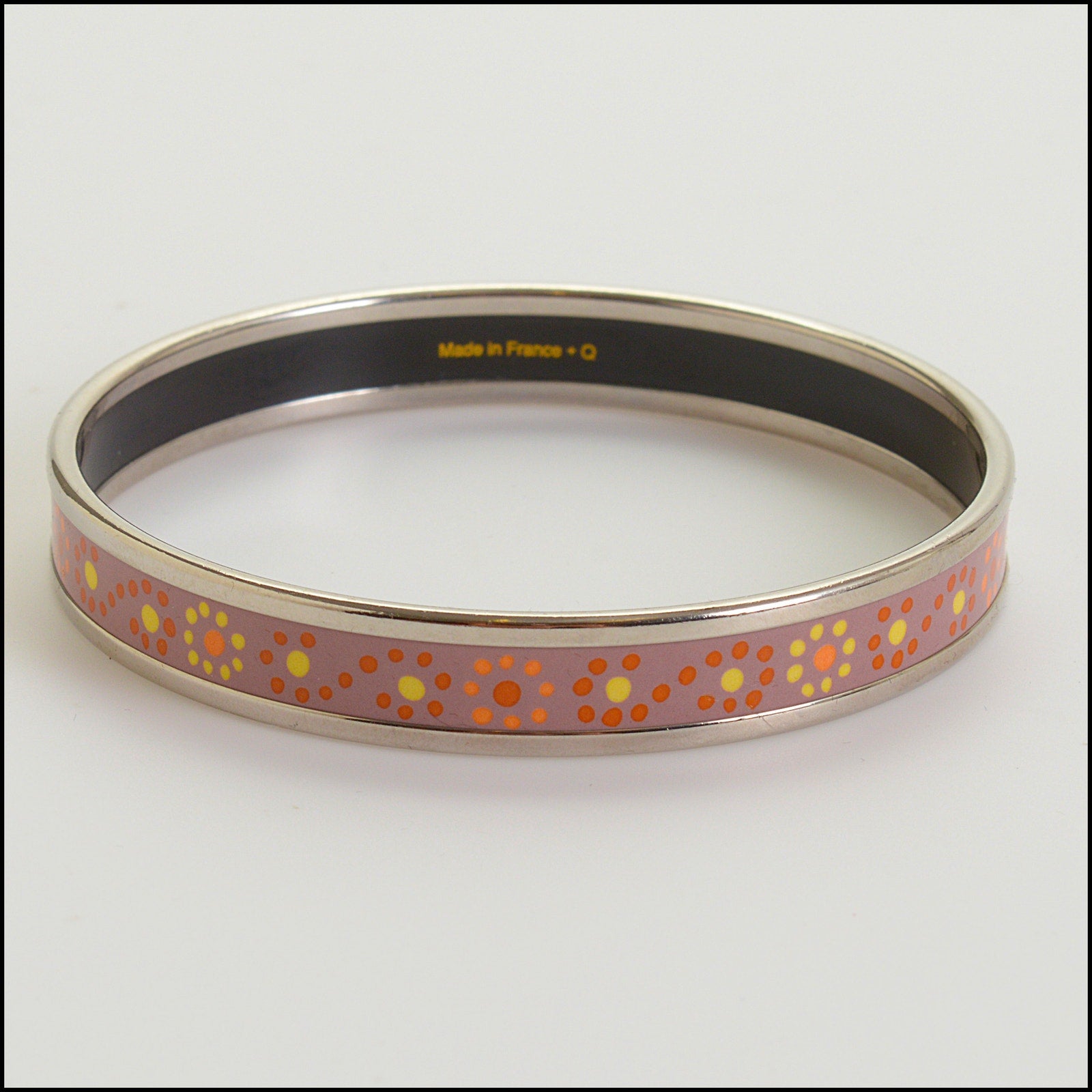 RDC14699 HERMES Mauve Palladium Narrow Printed Enamel Bangle Size XS