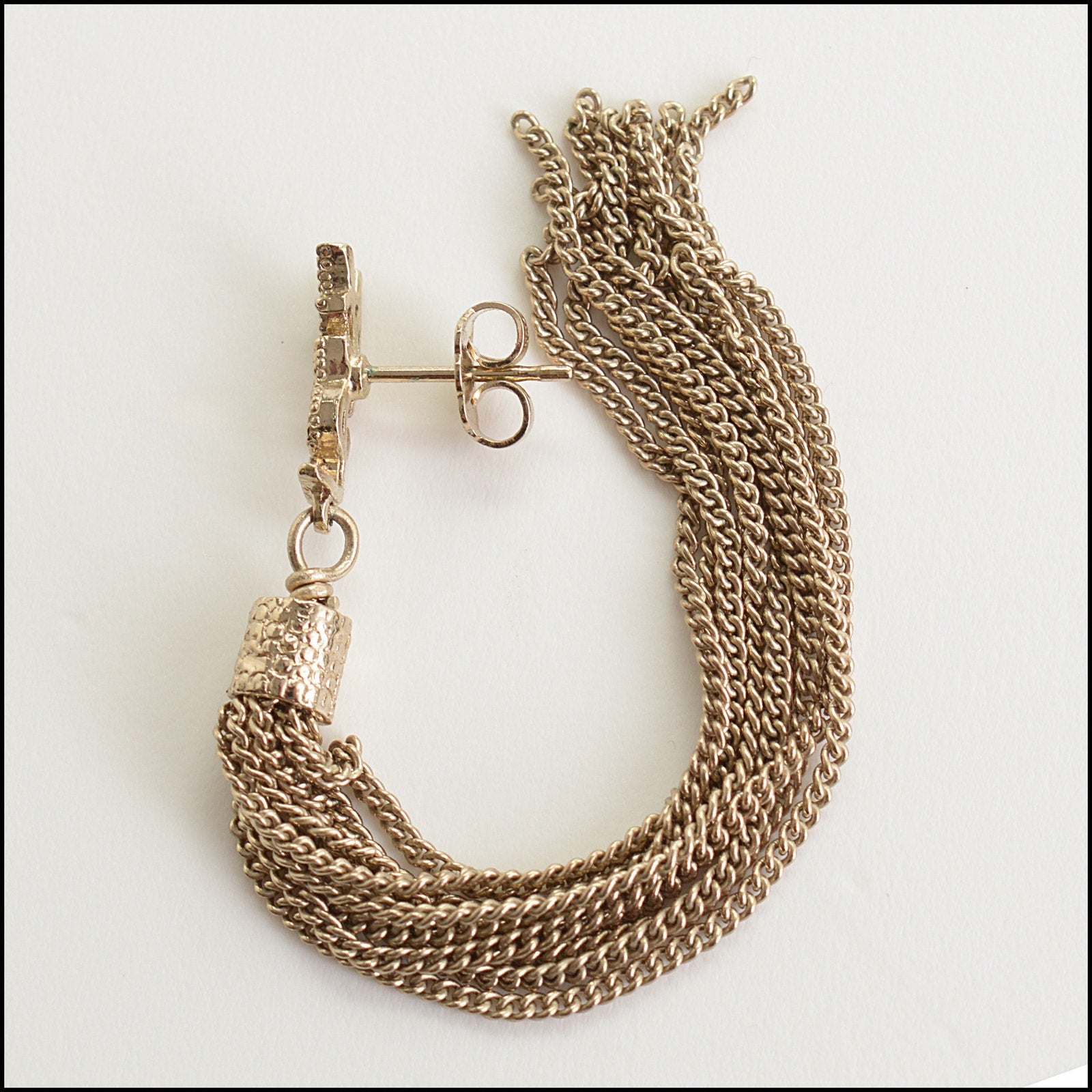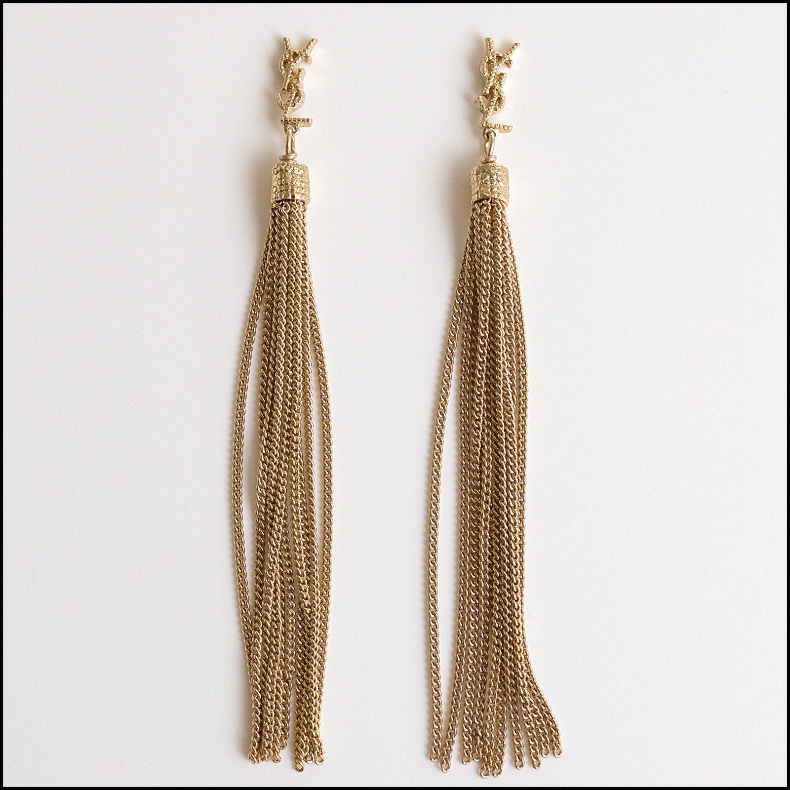 RDC14709 SAINT LAURENT YSL Light Golden Chain Fringe Dangle Earrings