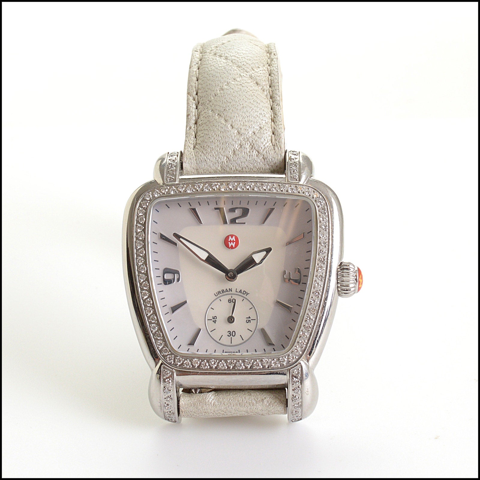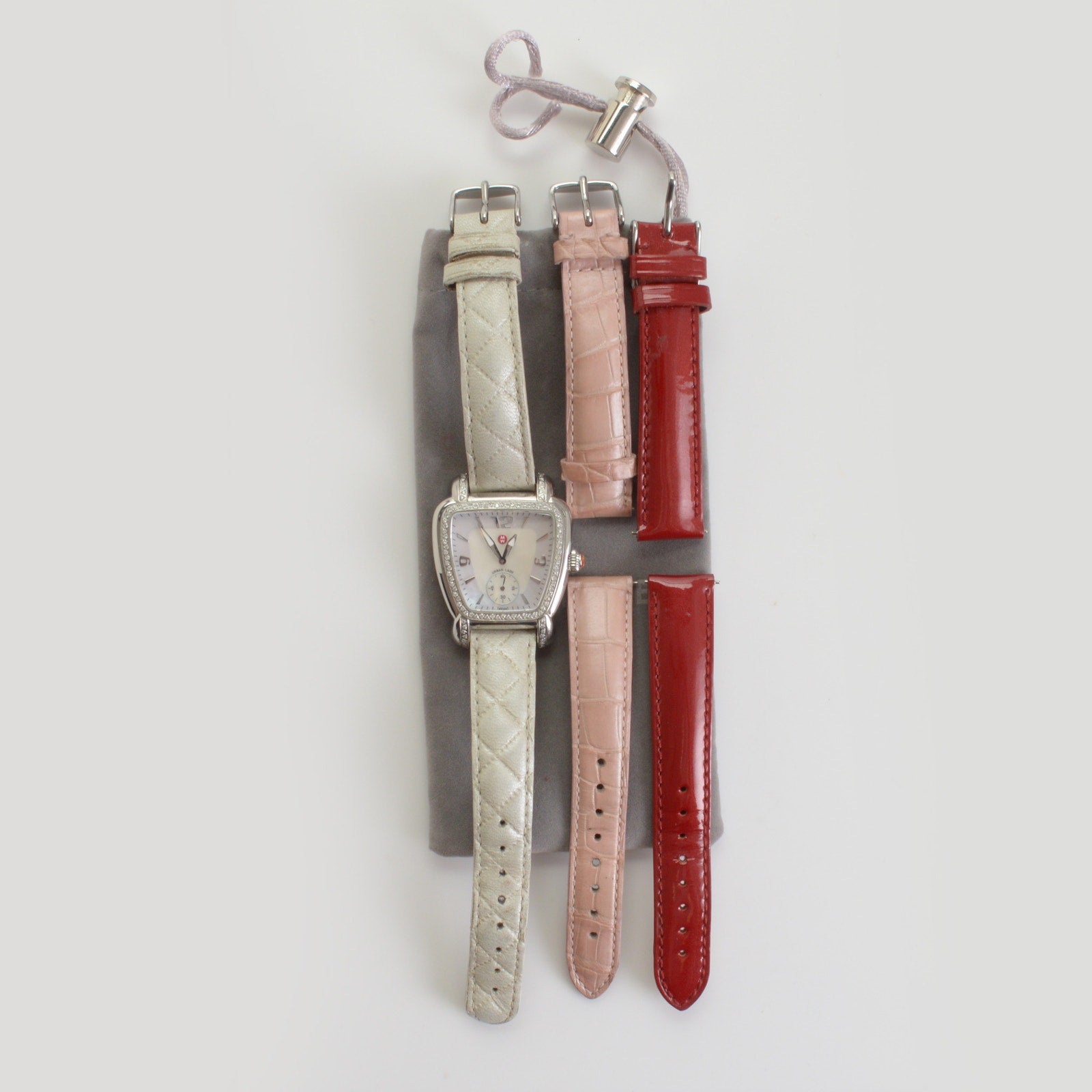 RDC14731 Michele Diamond Bezel Mop Trapezoid Urban Lady Watch w/ 2 Extra Bands