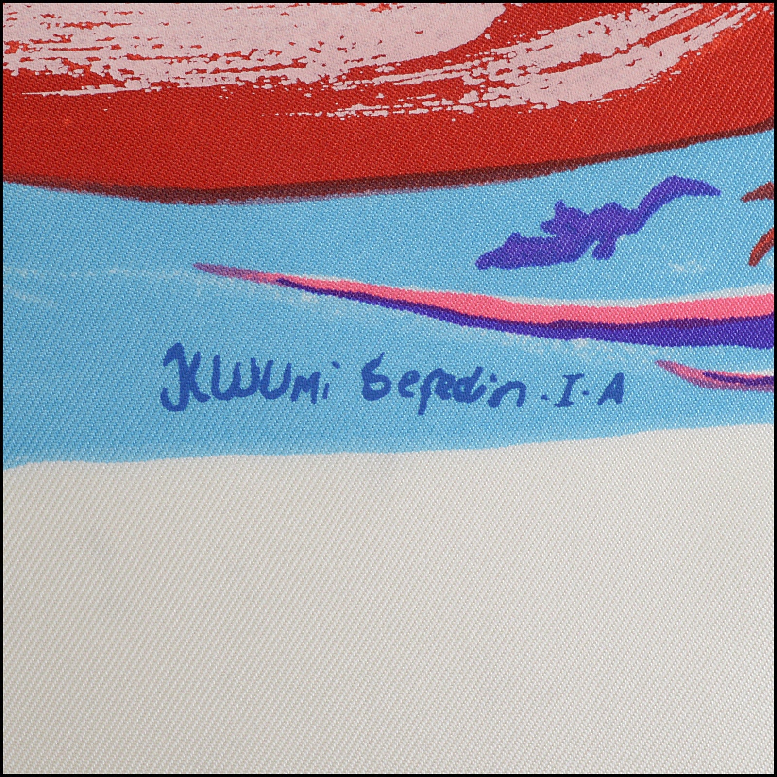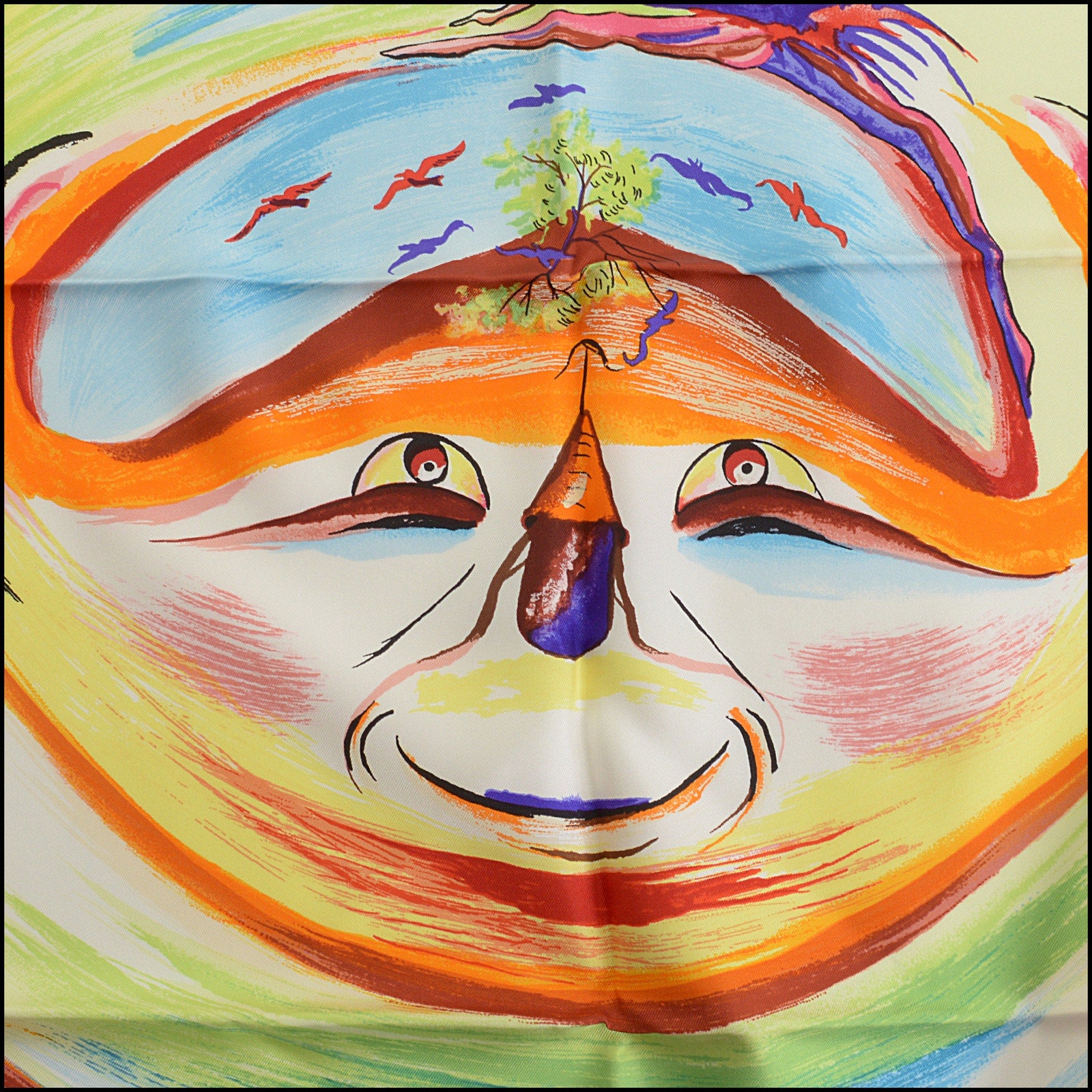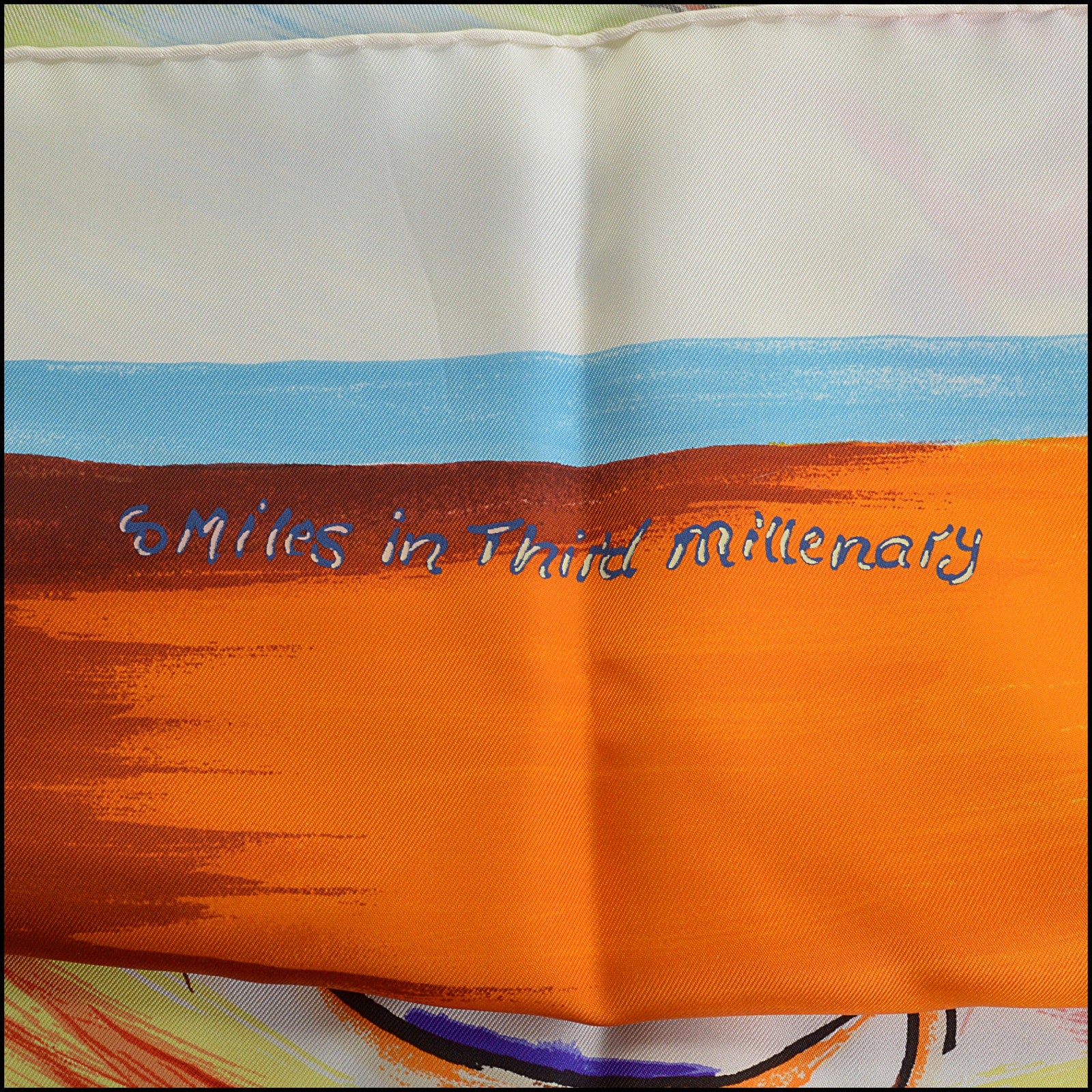 RDC14794 HERMES White "Smiles in Third Millenary" Silk Scarf 90 cm