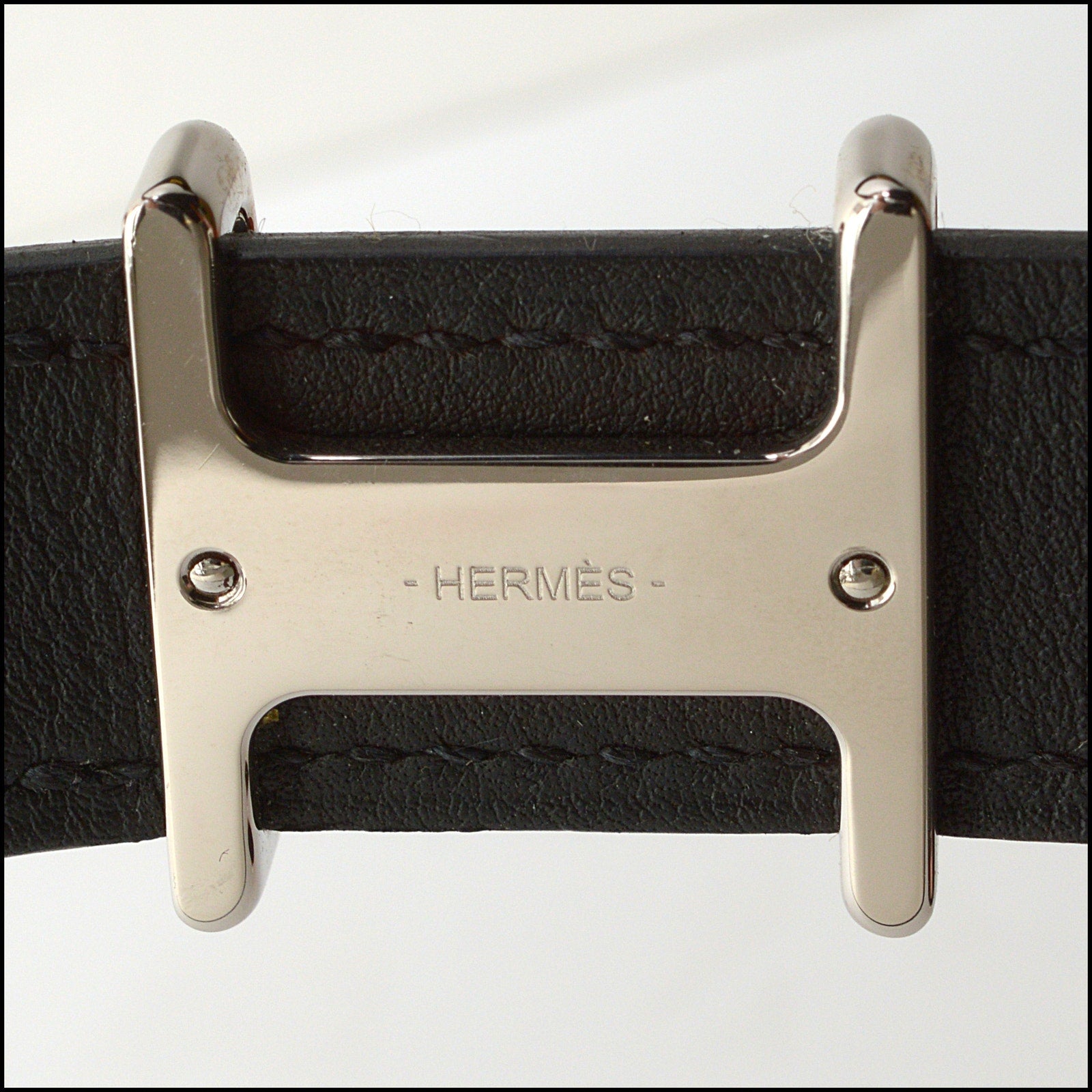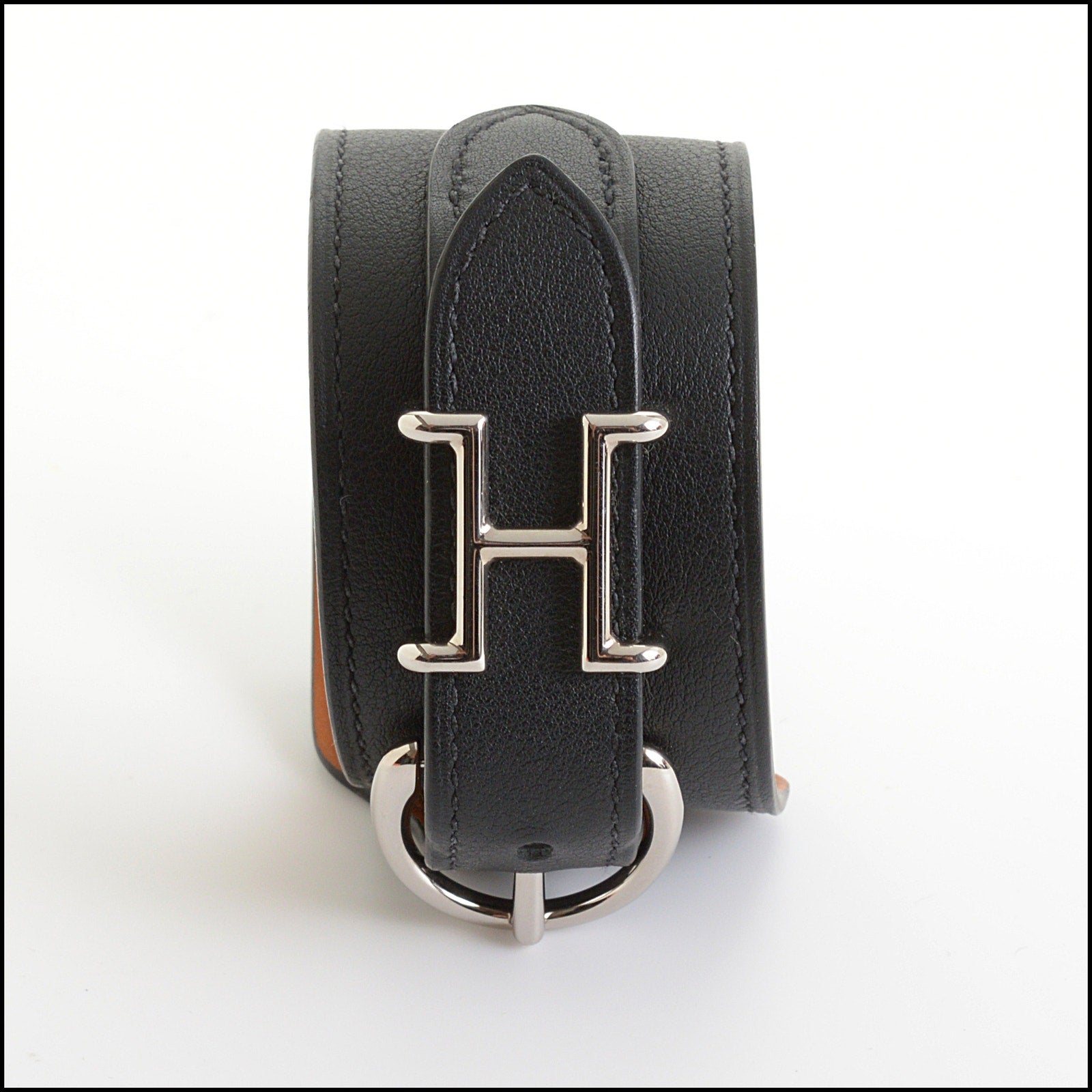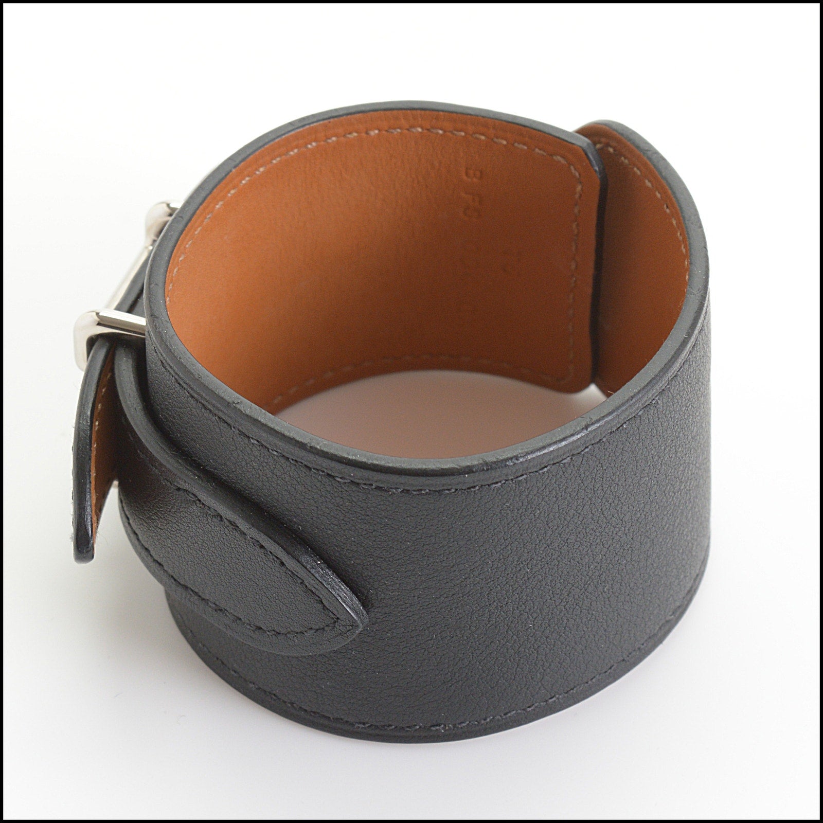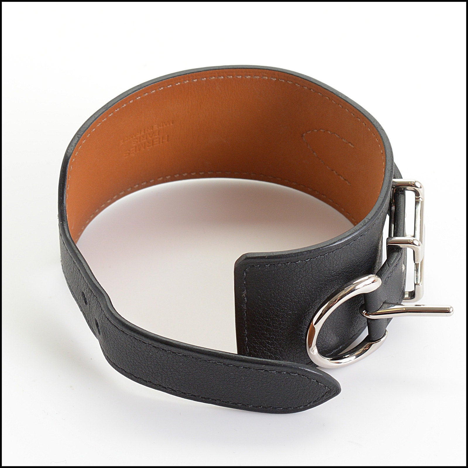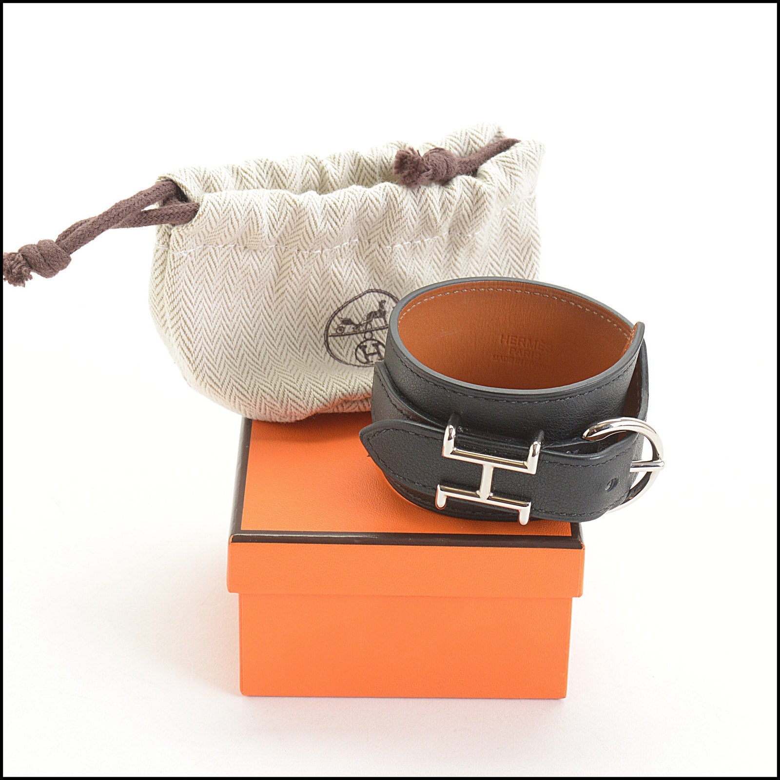 RDC14845 HERMES H Trench Leather Bracelet Black Cuff