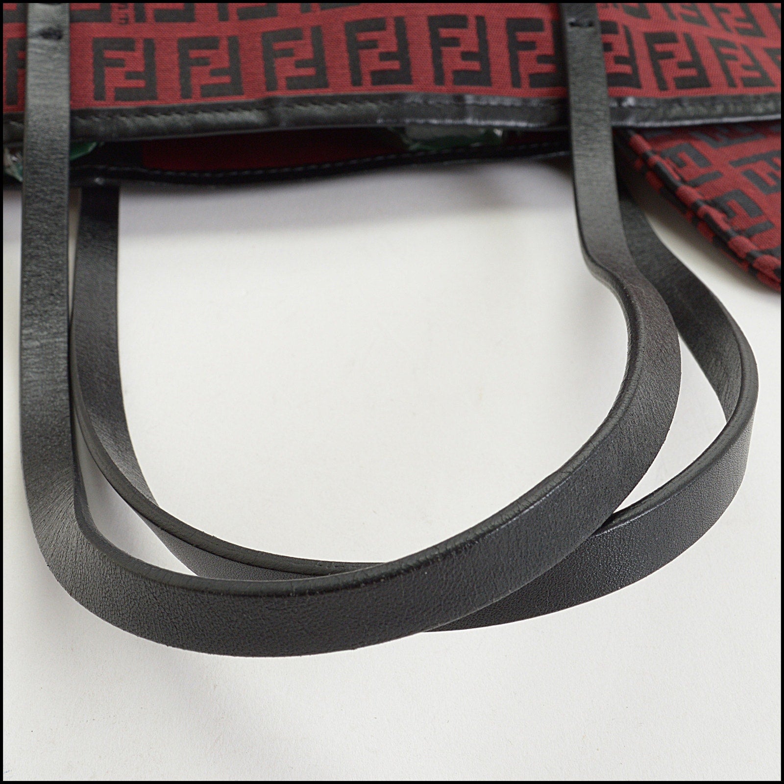 RDC14852 FENDI Red & Black Zucchino Canvas Mini Tote