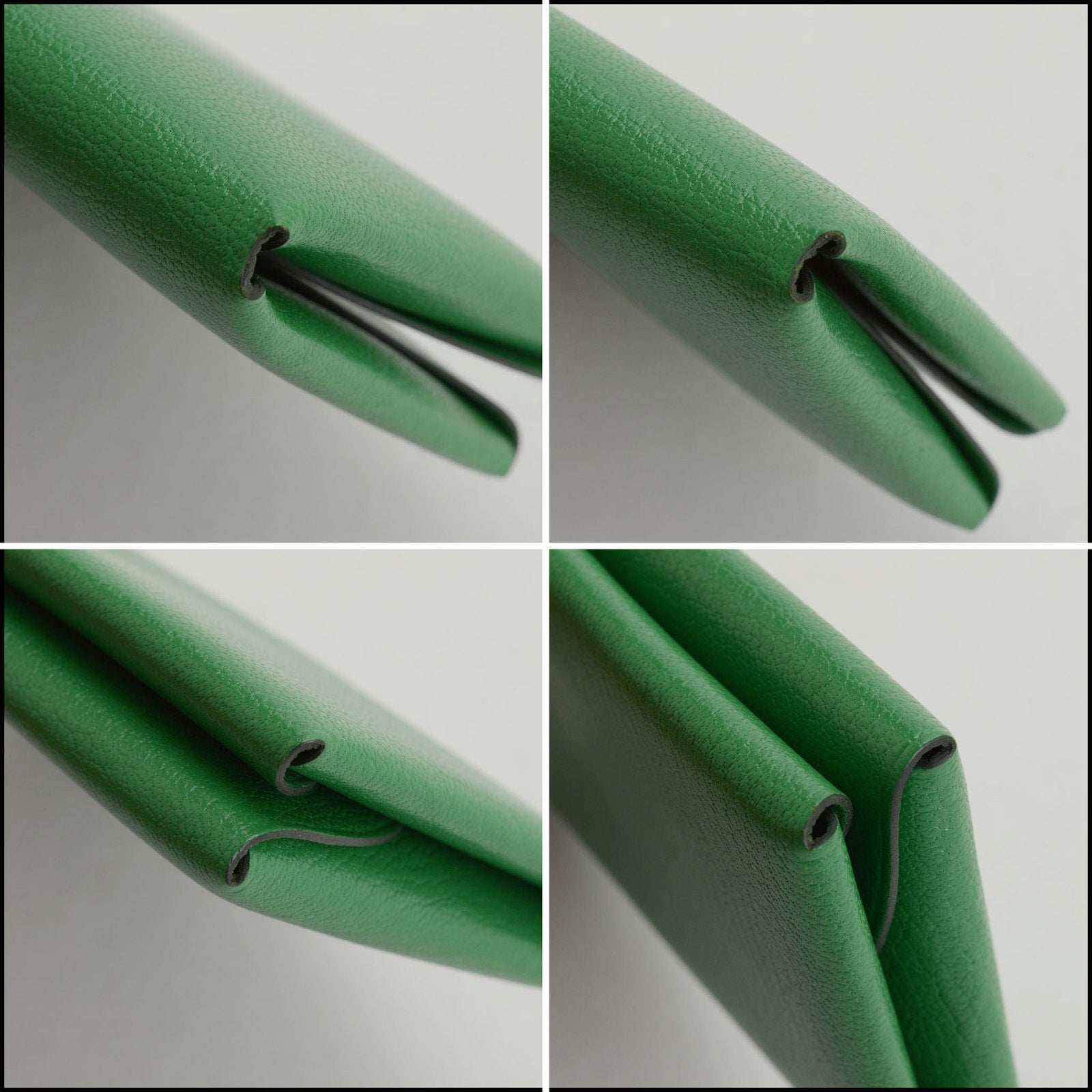 • Features: kelly green, goatskin leather lining, pull-our coin purse