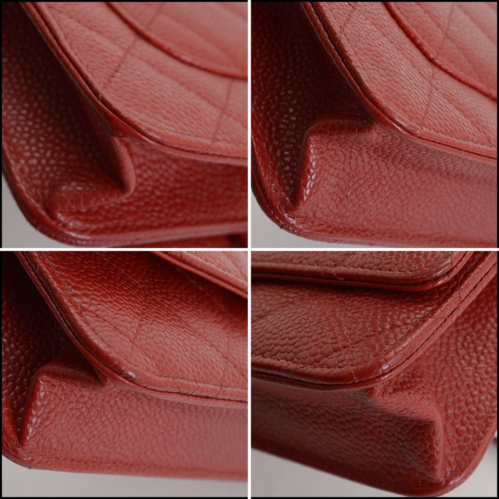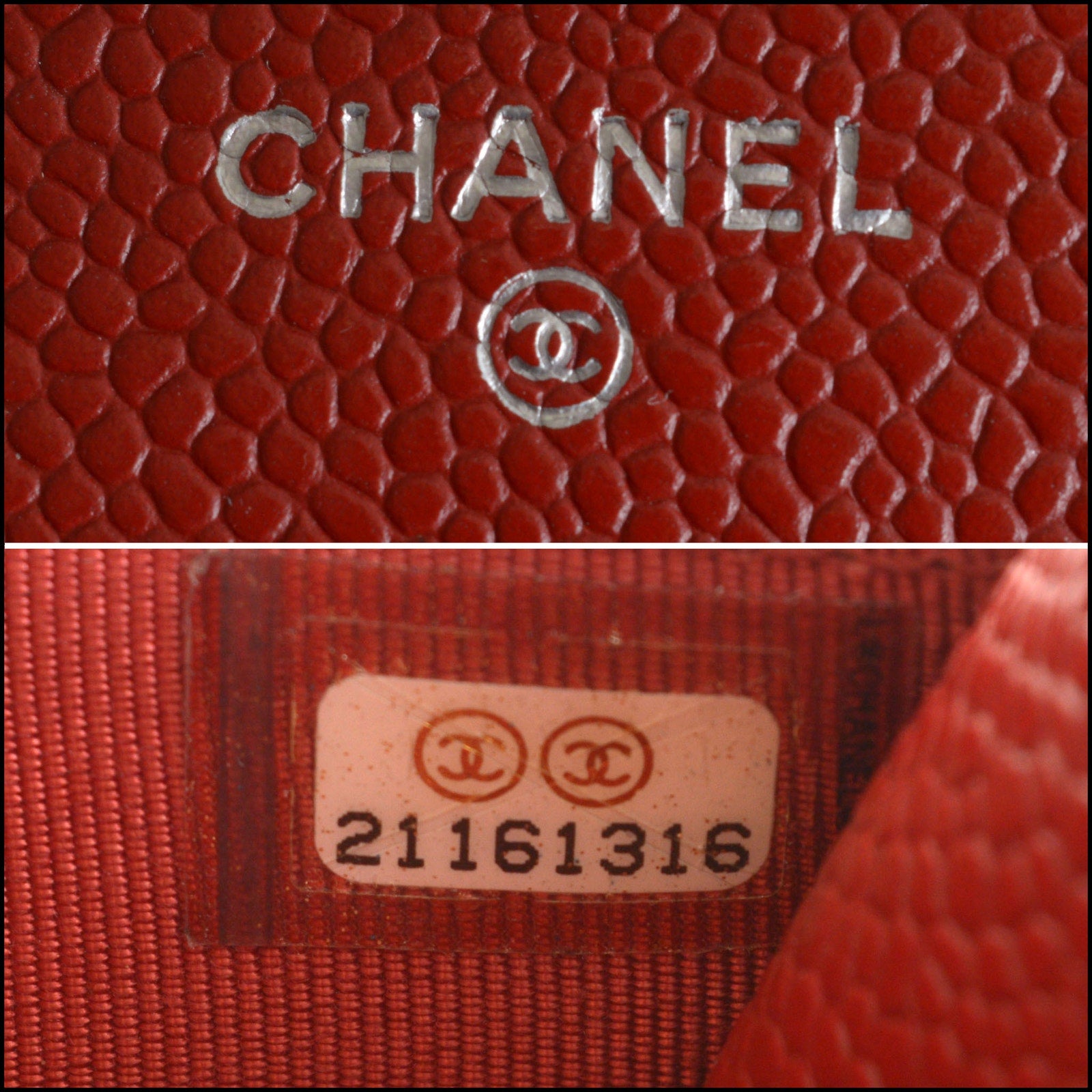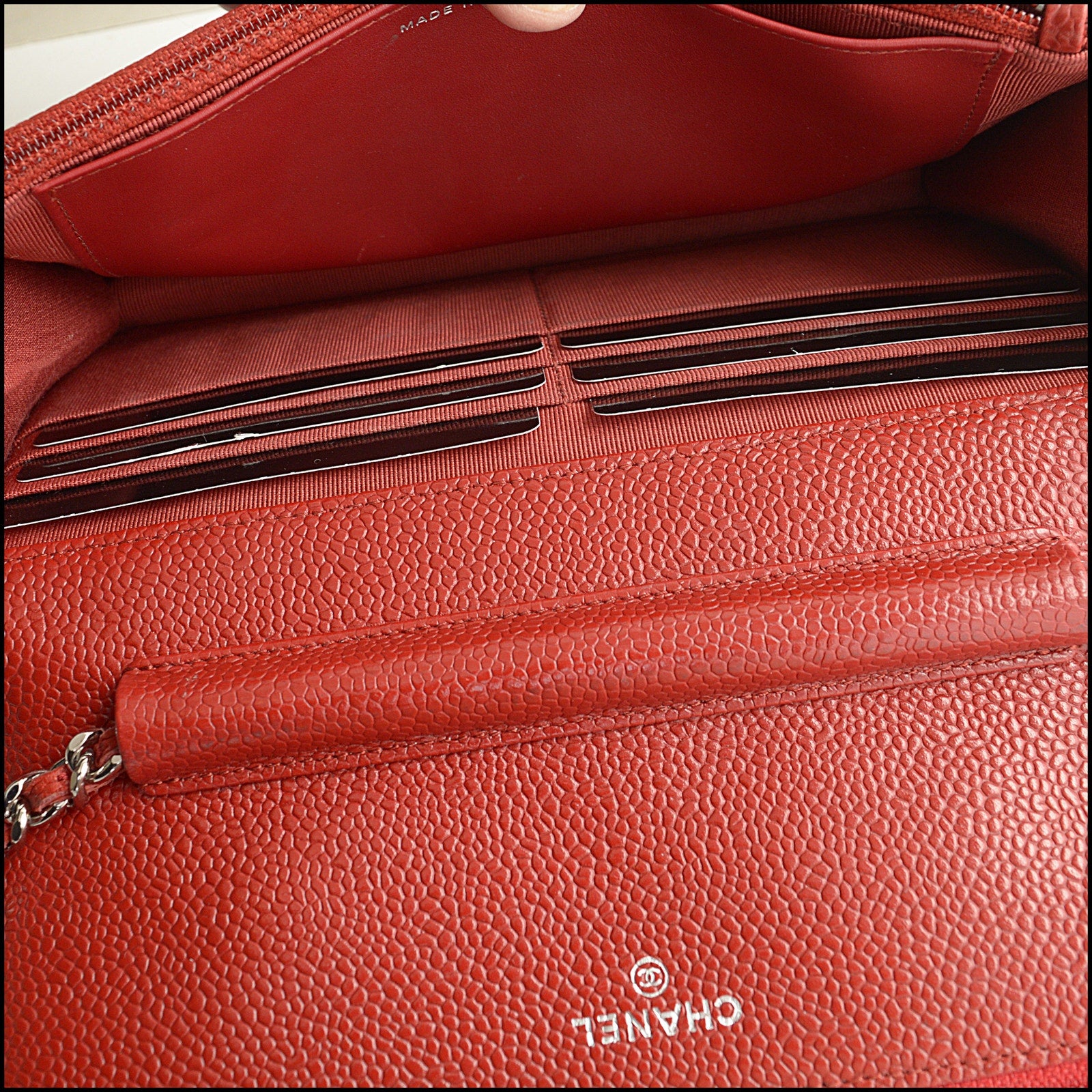 RDC14912 CHANEL '15-16 Red Caviar Leather Silver HW Classic Wallet on Chain