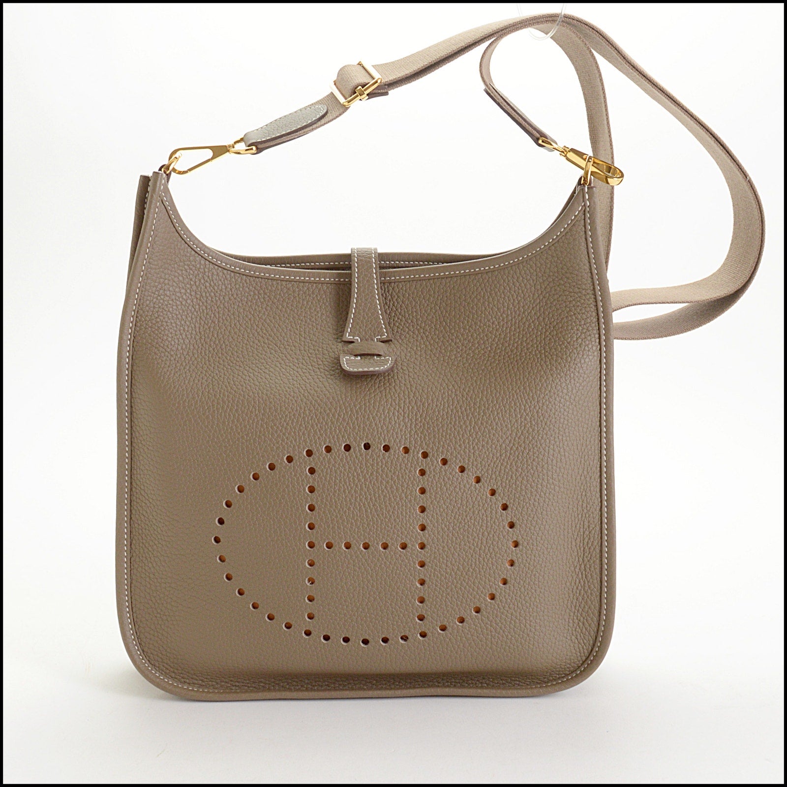 RDC14917 HERMES 2021 Etoupe/Taupe Clemence Leather Evelyne III 29 Pocket Crossbody Bag