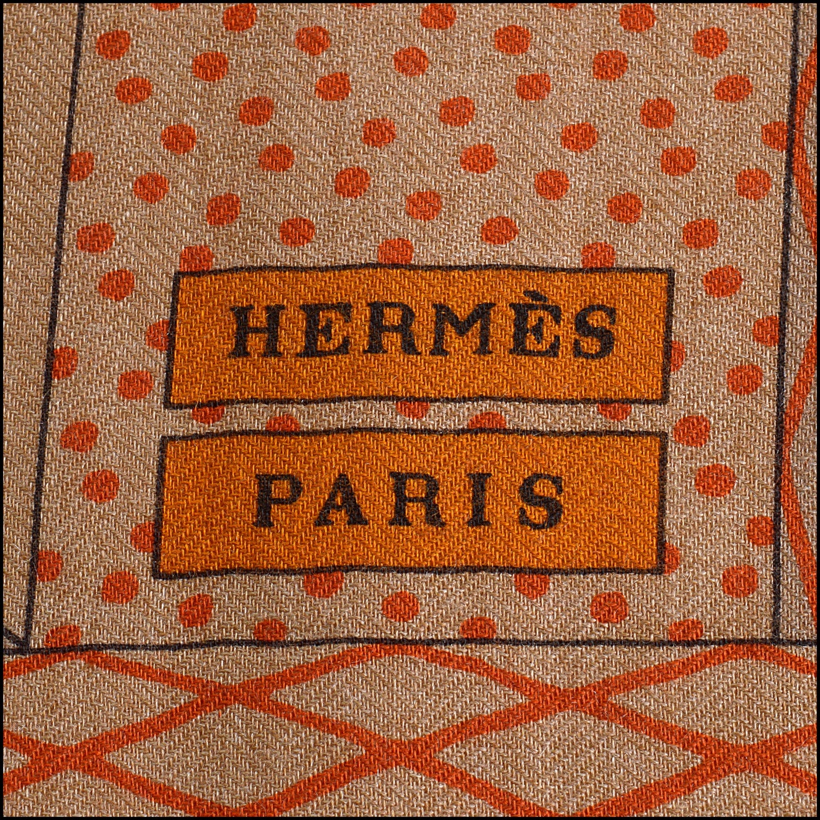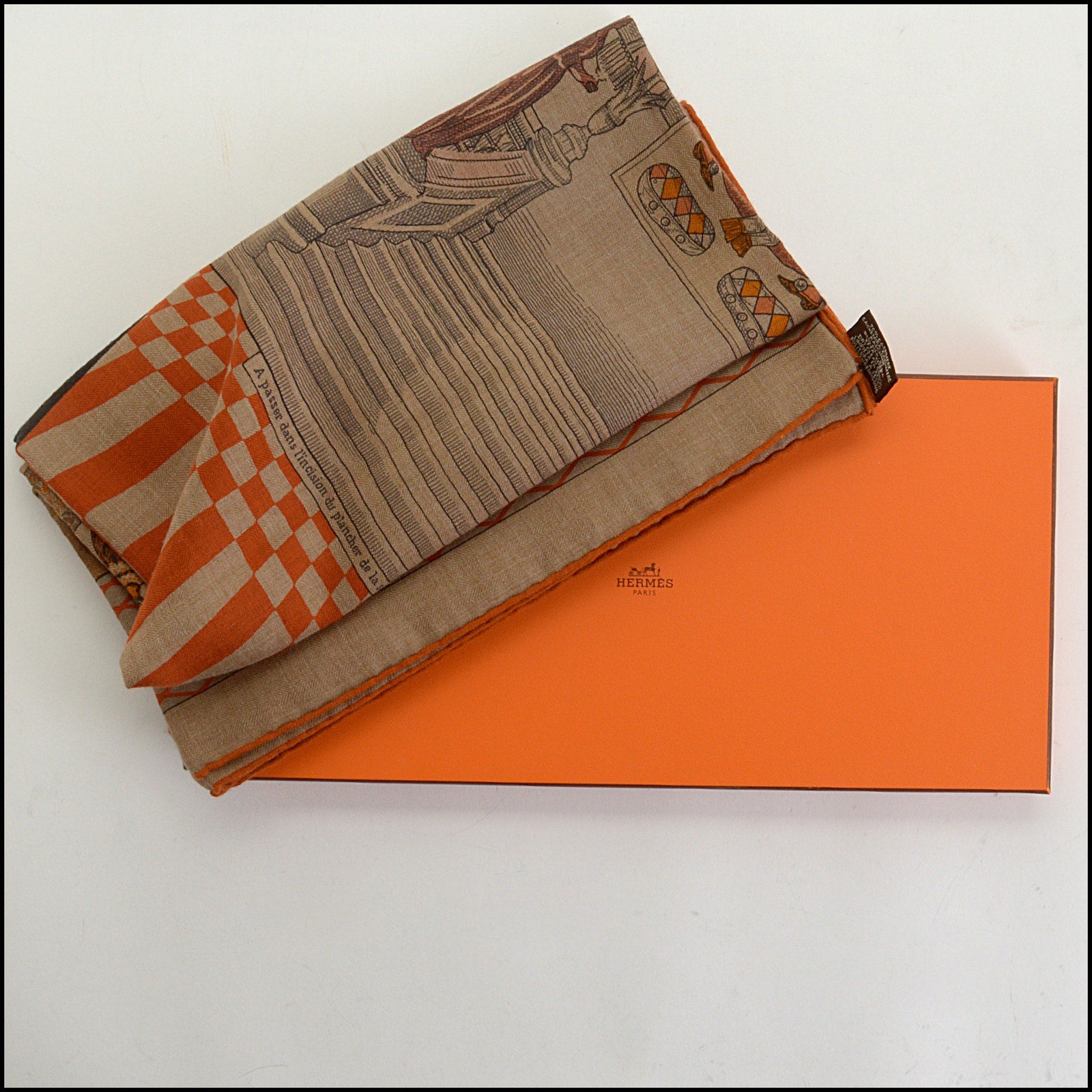 RDC14923 HERMES Orange/Beige Cashmere Silk "Grand Theatre Nouveau" 140 Large Shawl/Scarf