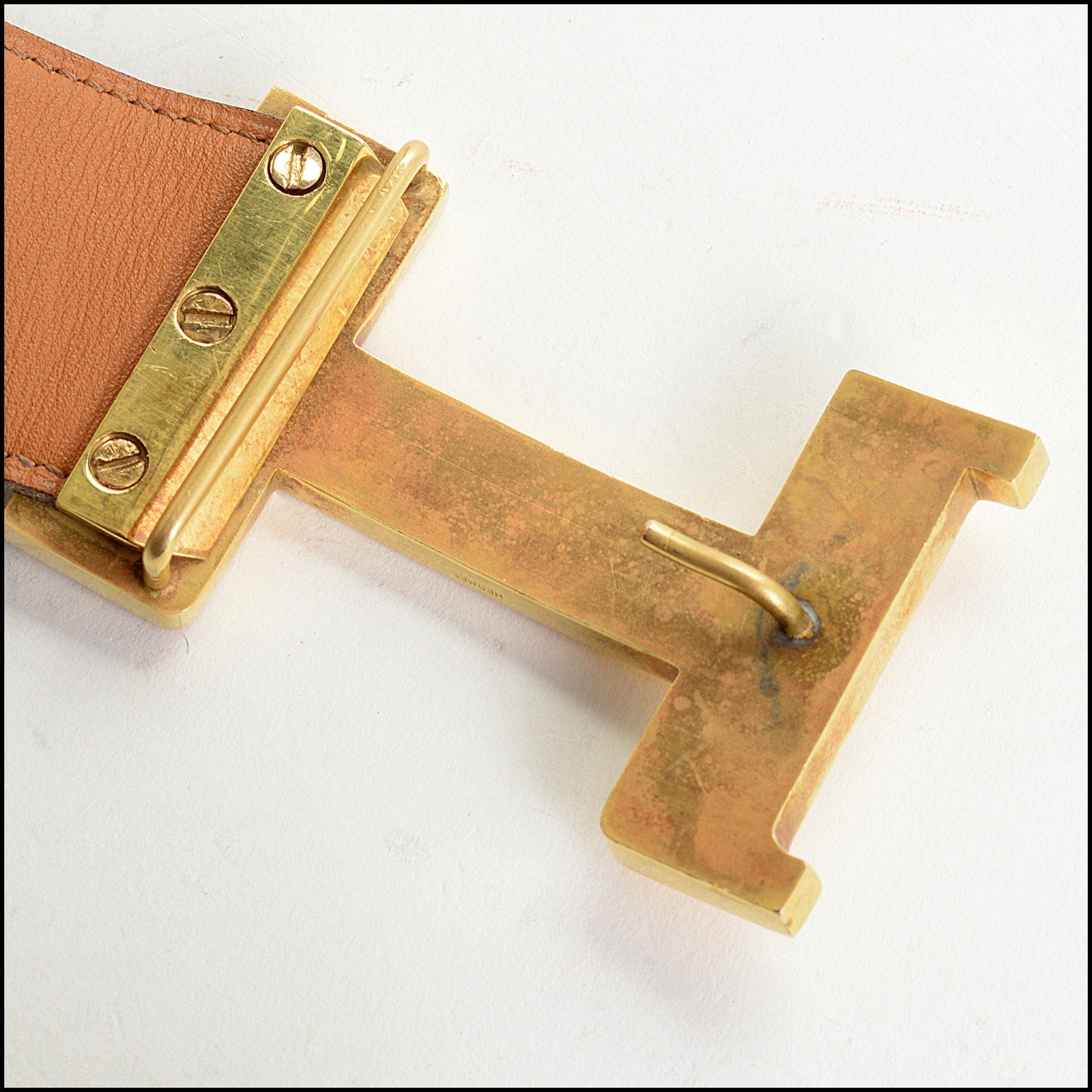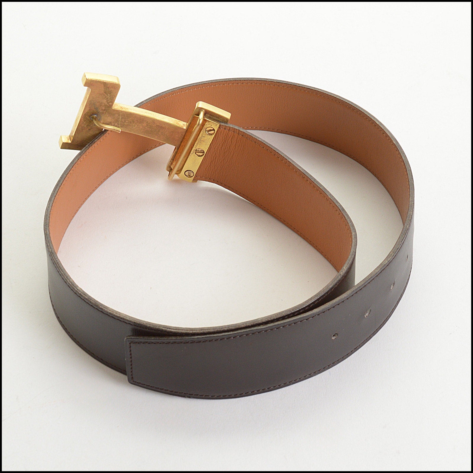 RDC14927 HERMES Dark Brown Leather Gold H Buckle Constance Belt Size XS 75/30