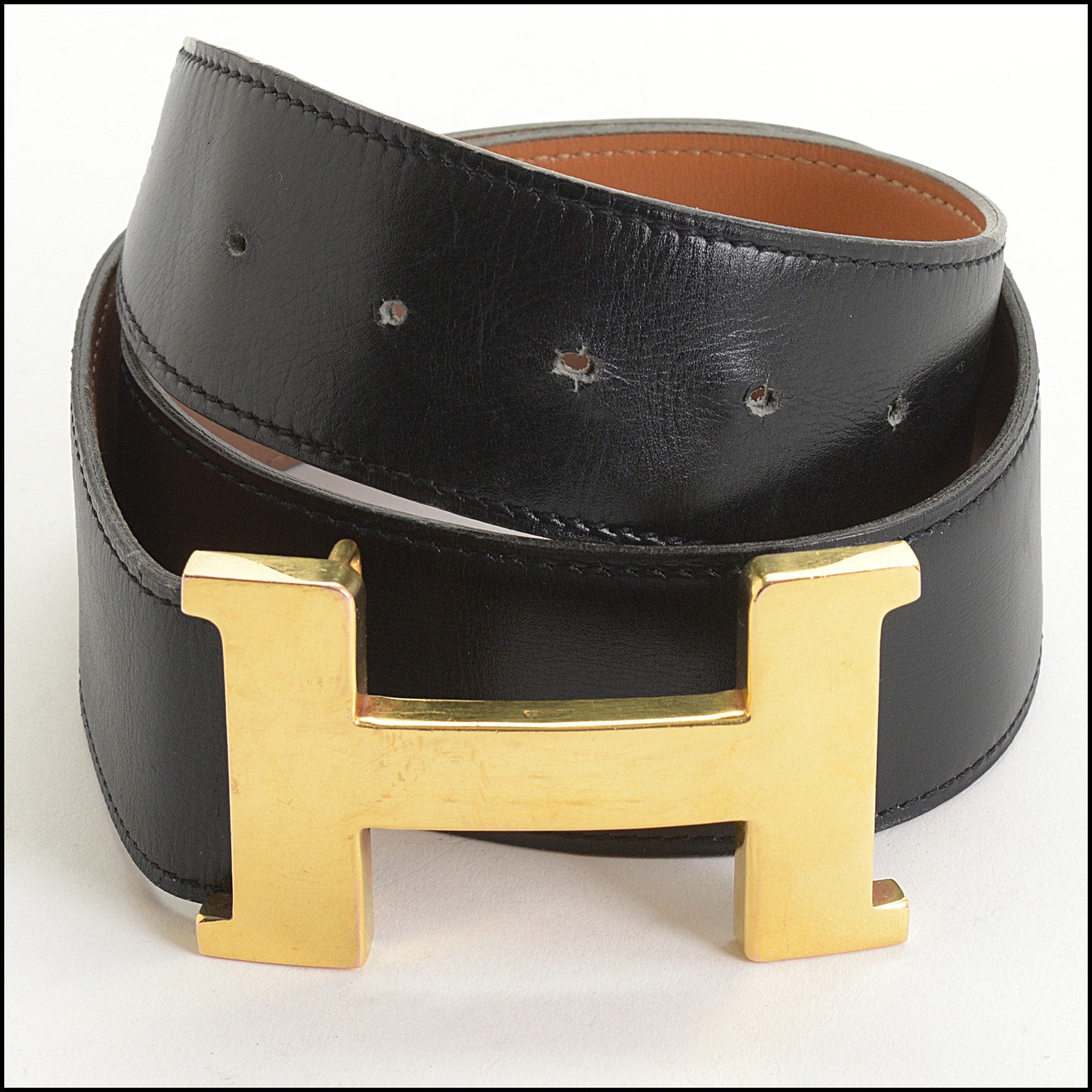 RDC14928 HERMES Black Leather Gold H Buckle Constance Belt Size XS 75/30