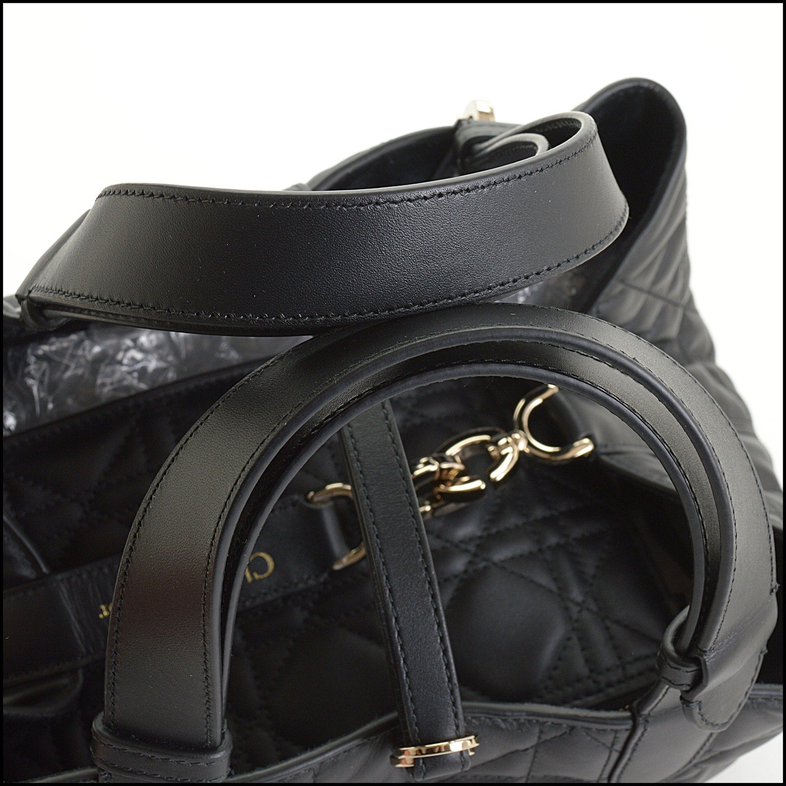 • Features: black leather & suede lining, Dior logo clasp, adjustable handle detail