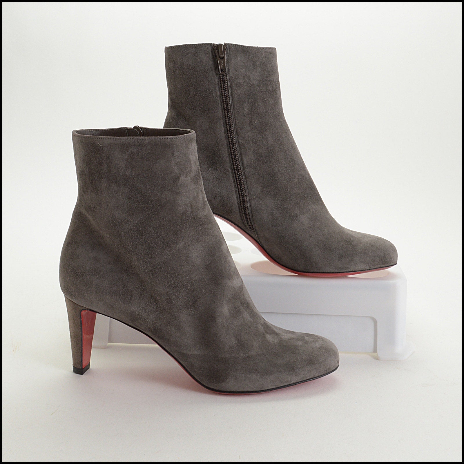 RDC14947 CHRISTIAN LOUBOUTIN Grey Suede High Heel Ankle Boots Size 39.5