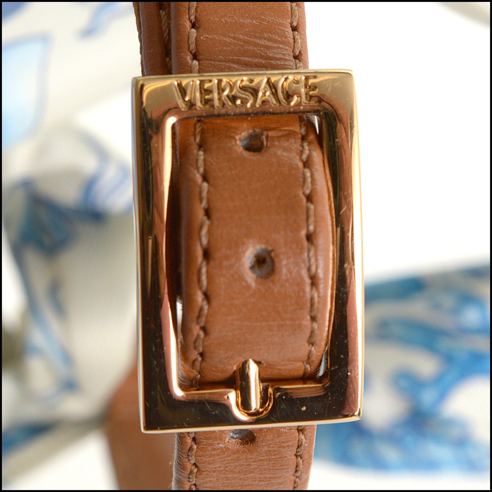 • Features: silk thong with gold Medusa accent; silk printed seashells, star fish, seaweed, stripes and polkadots; brown leather accents