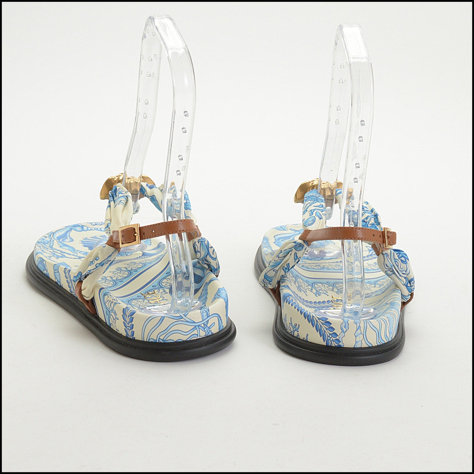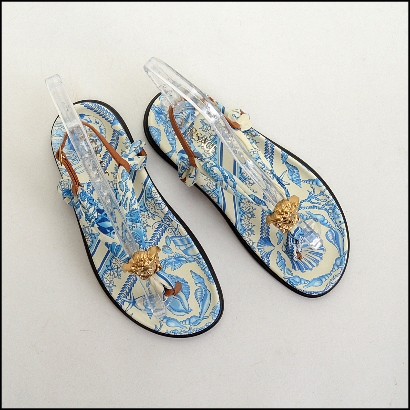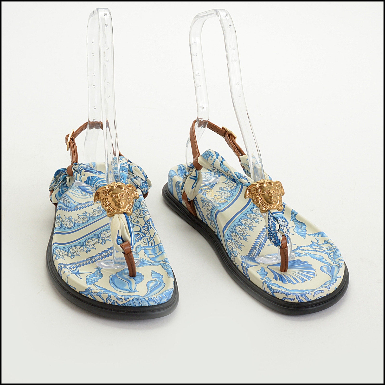 RDC14963 Authentic VERSACE Blue/White Underwater Barocco La Medusa Sandals Size 40