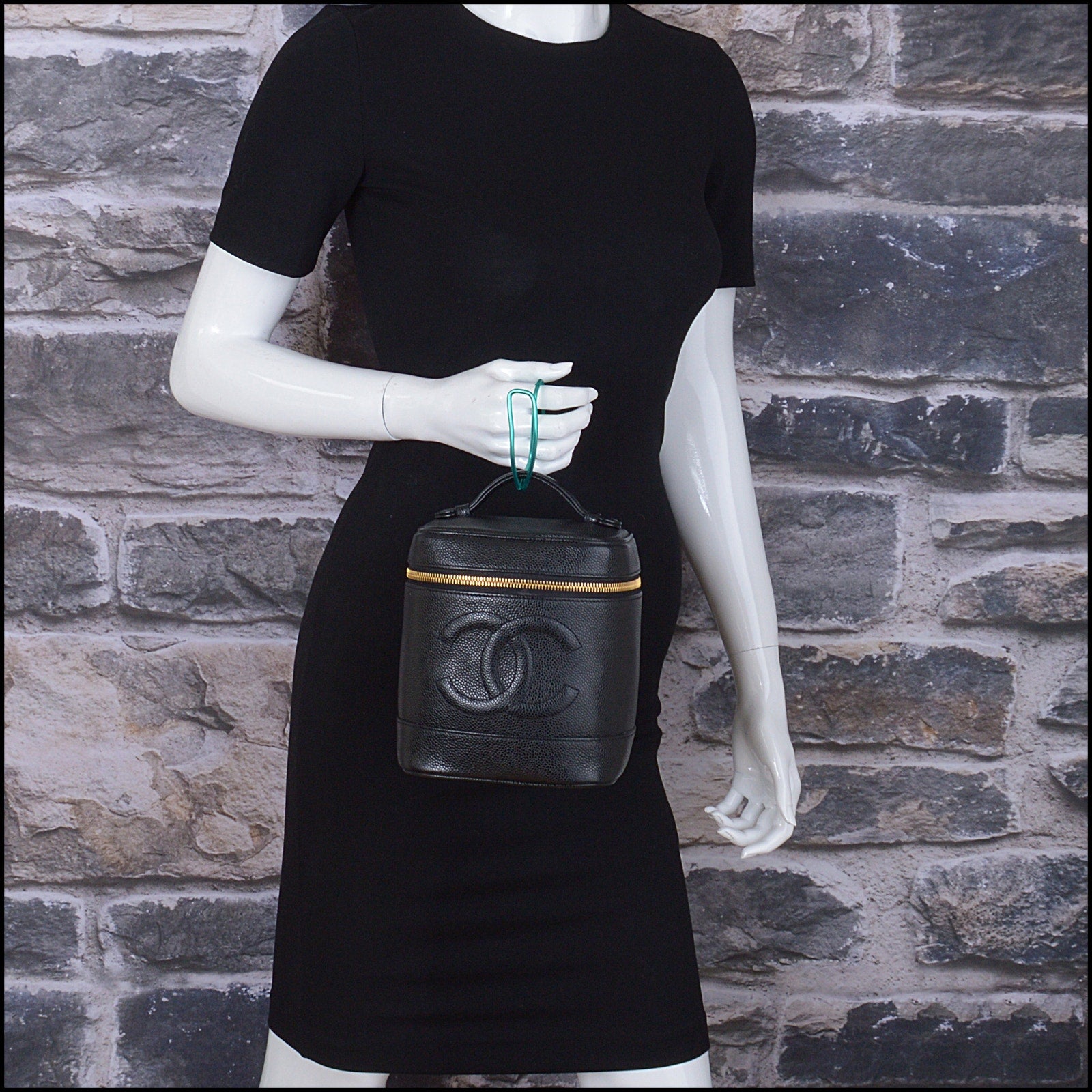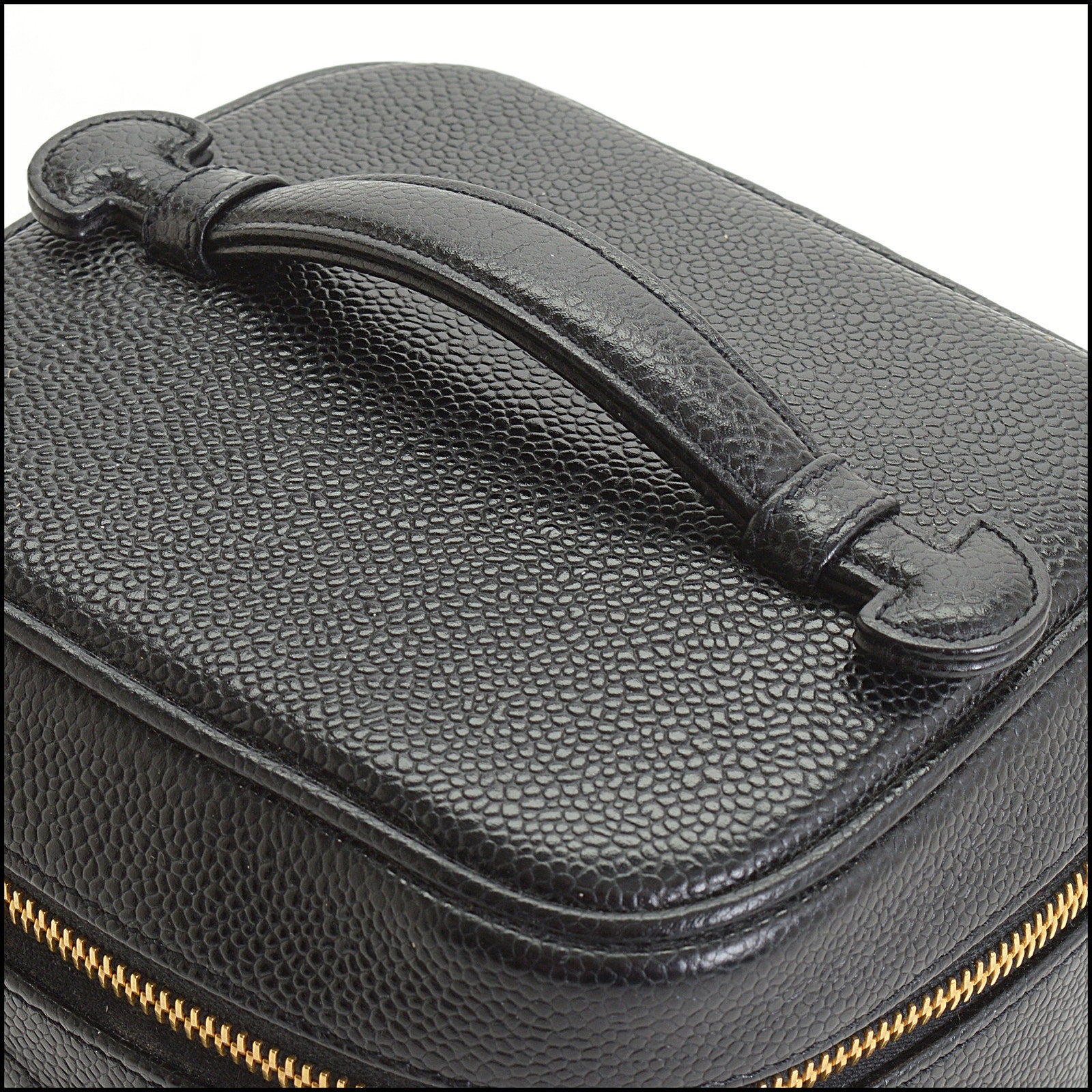 RDC14968 CHANEL '00-02 Black Caviar Leather Vanity Case Cosmetic Bag