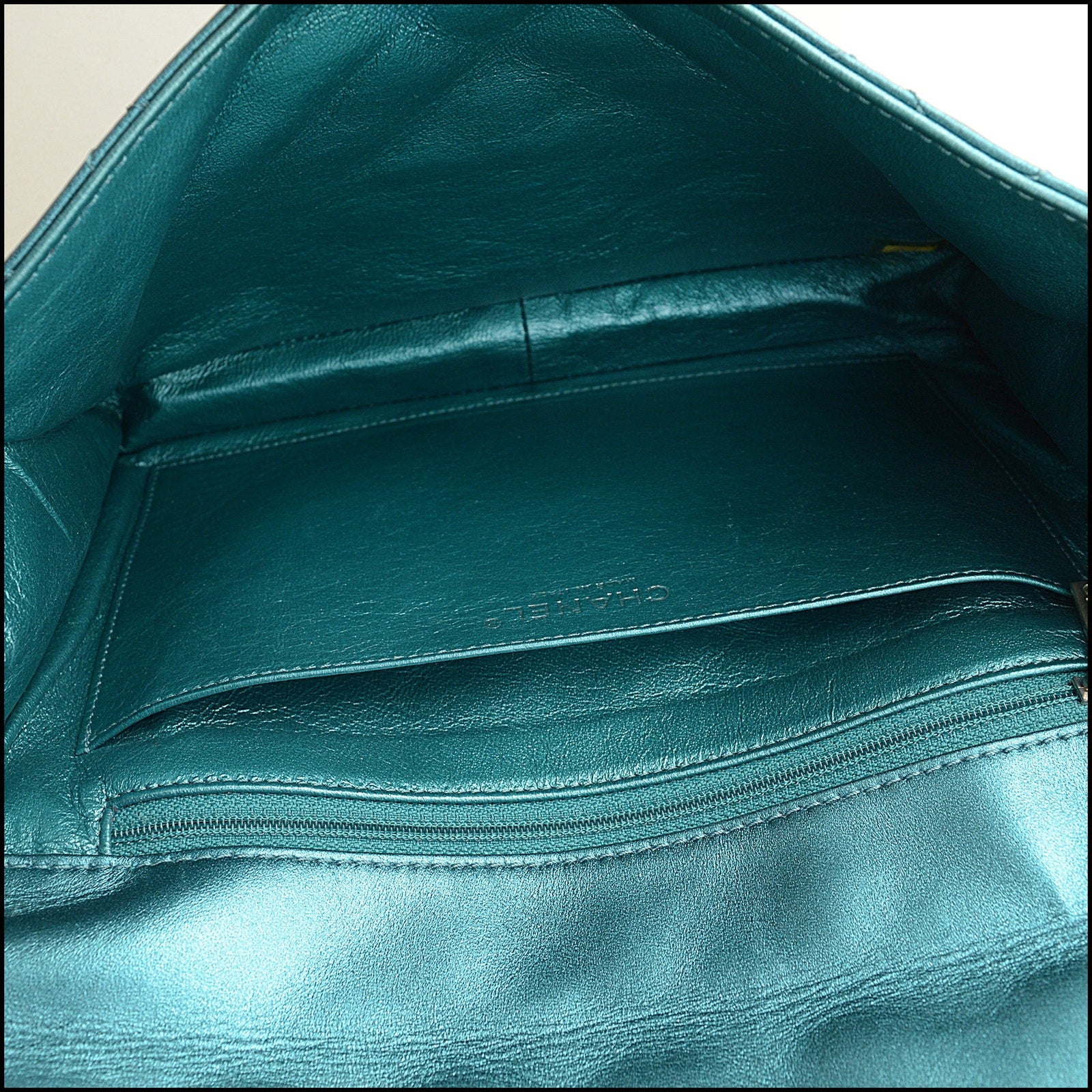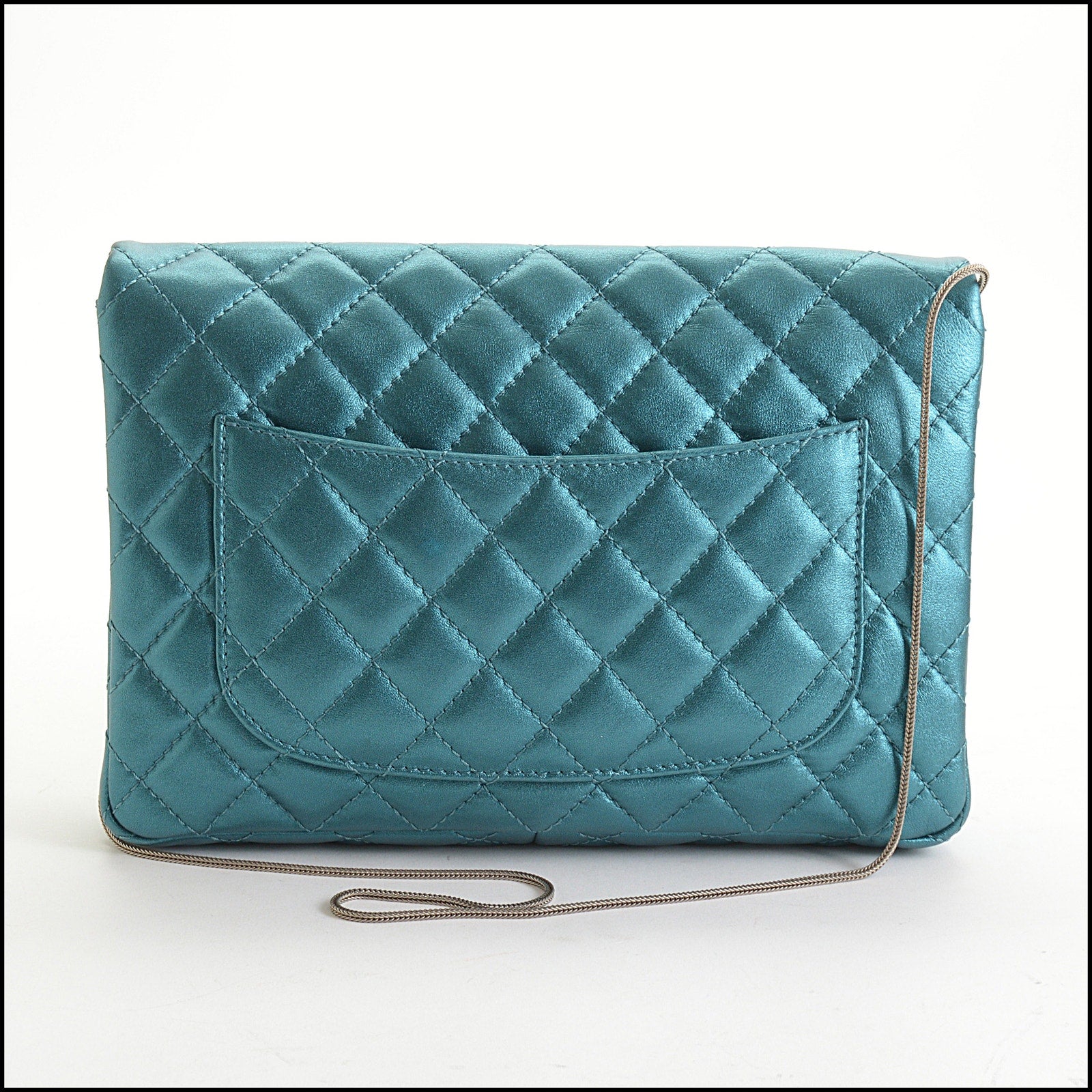 RDC14970 CHANEL '08-09 Teal Metallic Reissue Flap Clutch Snake Chain Shoulder Bag