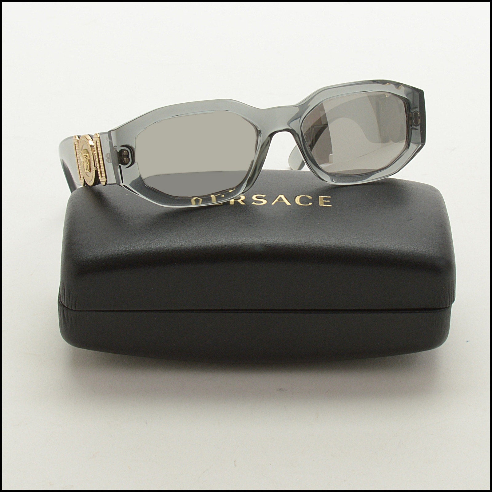 RDC14997 VERSACE Grey Translucent Acetate Gold Medusa Accent Biggie Unisex Sunglasses