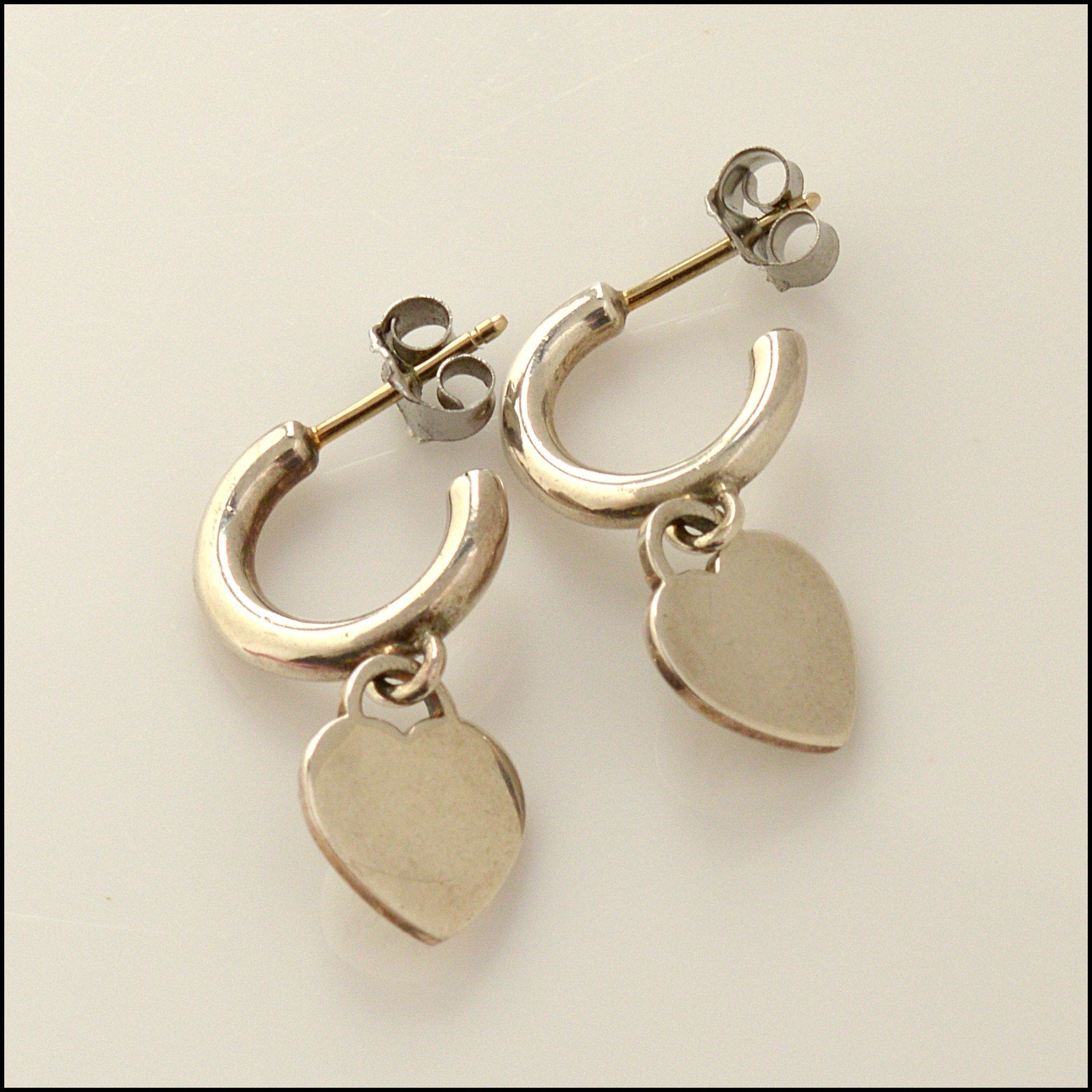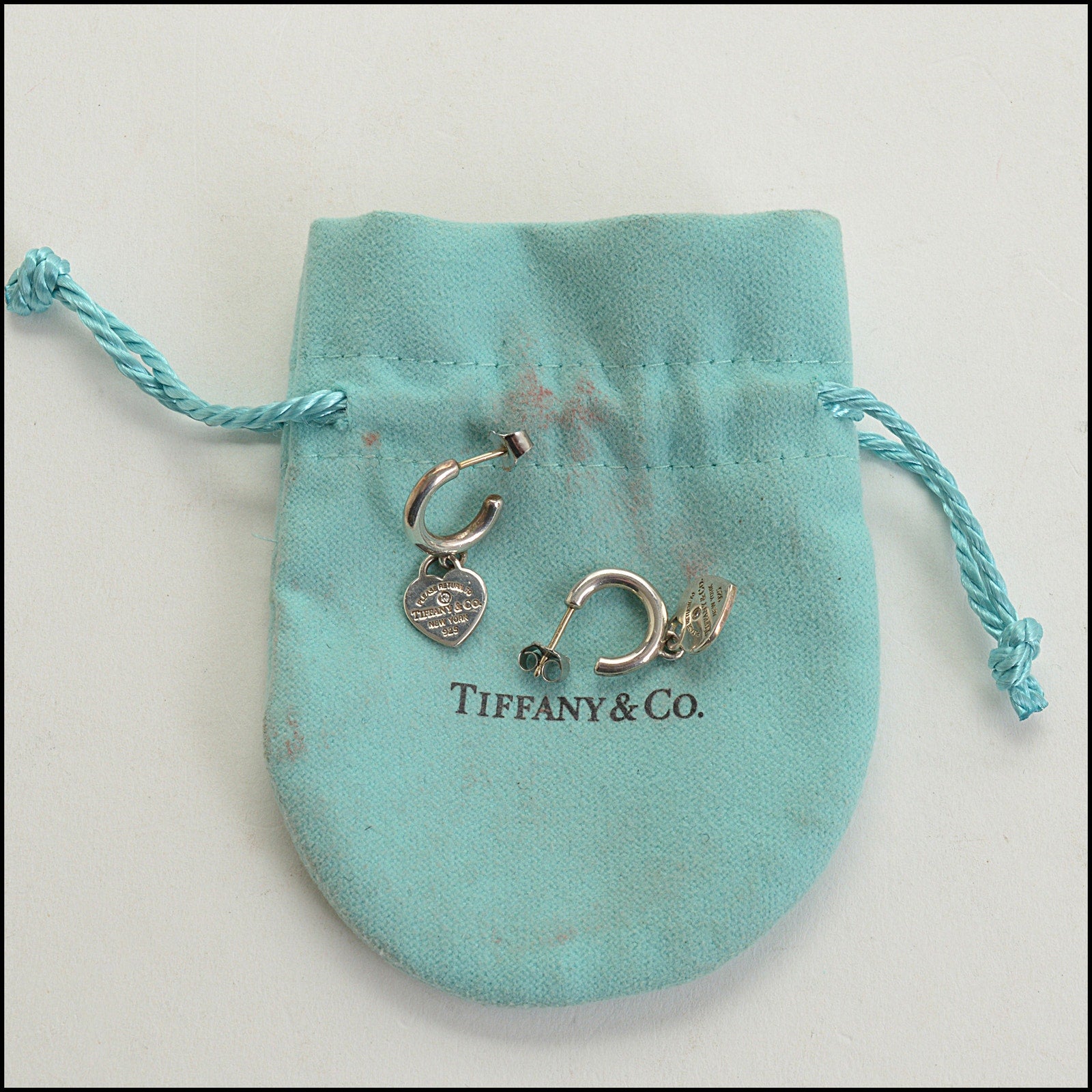 RDC15007 TIFFANY & CO. Sterling Silver Mini Heart Diamond "Return to Tiffany" Hoop Earrings