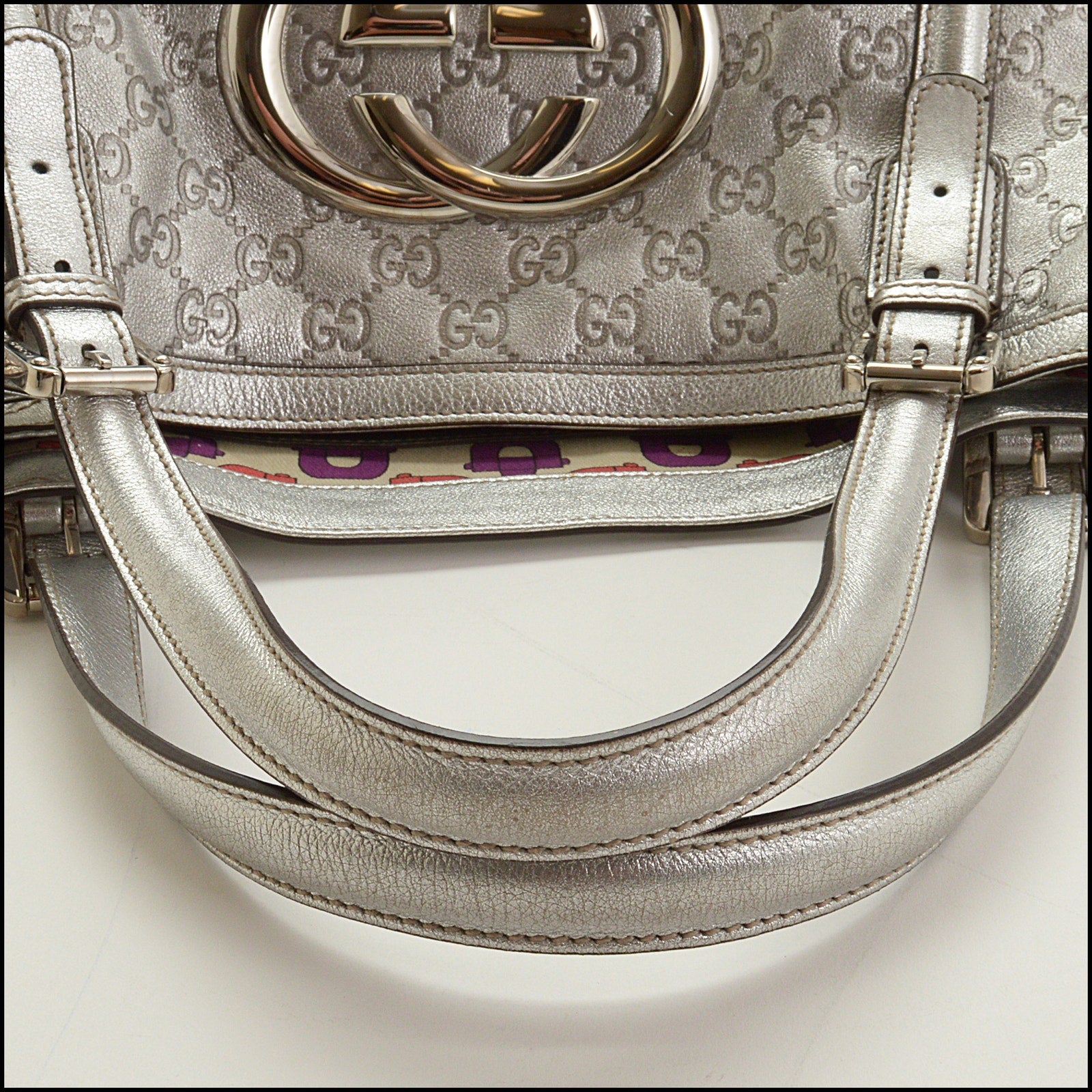 RDC15033 GUCCI Silver Guccissima Leather GG Britt Tote Bag
