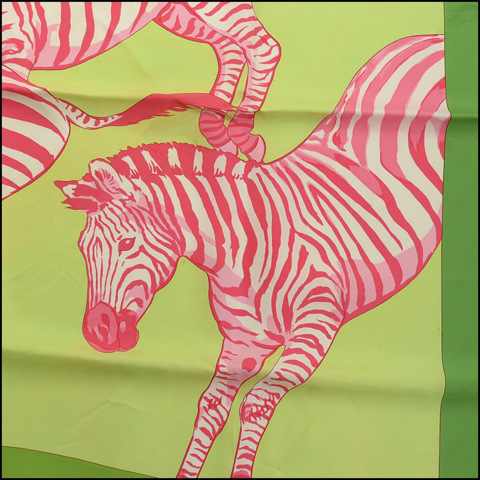 RDC15090 HERMES Green/Pink "Les Zebres II" 90 Silk Scarf