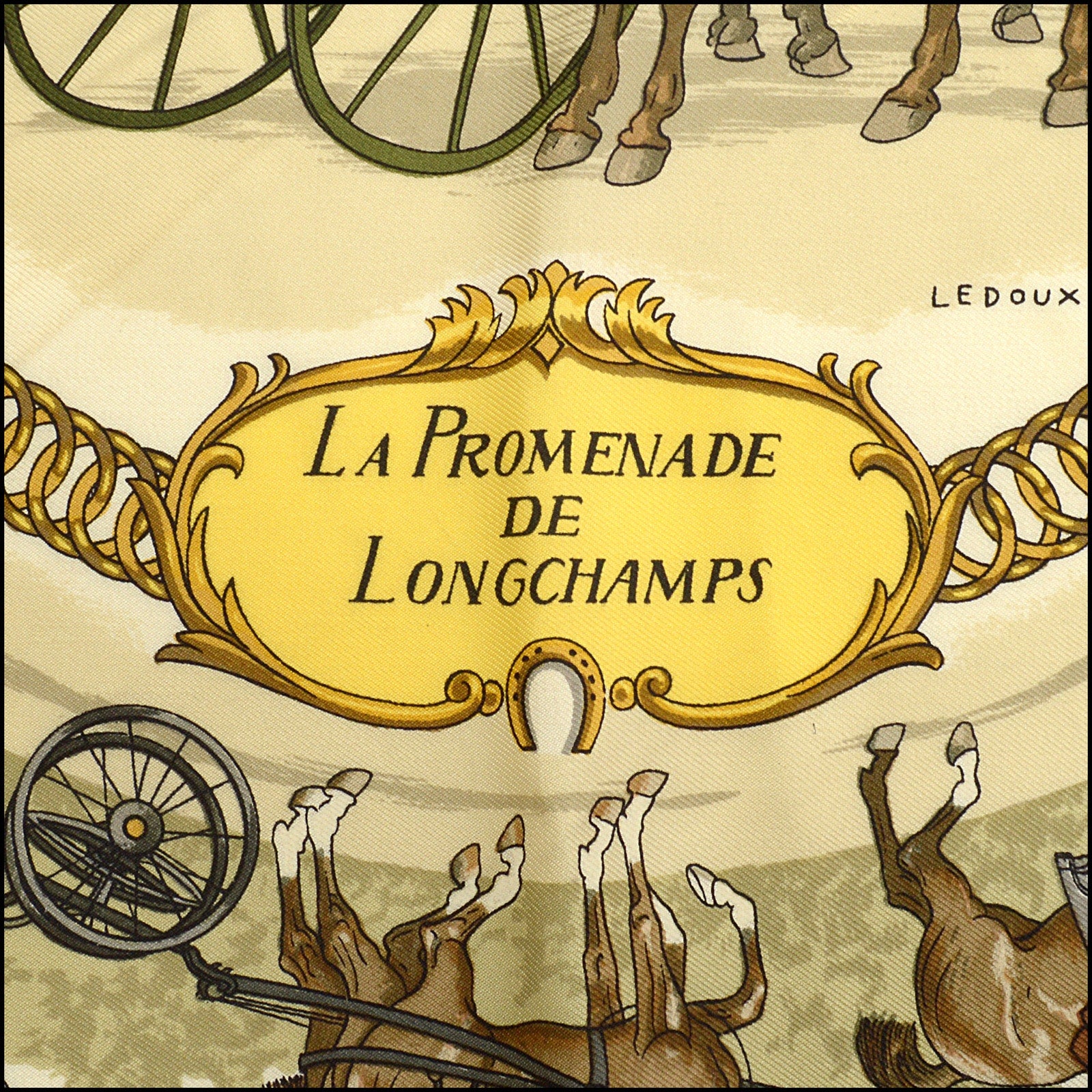 RDC15094 HERMES Vintage Pink/White "La Promenade de Longchamp" 90 Silk Scarf